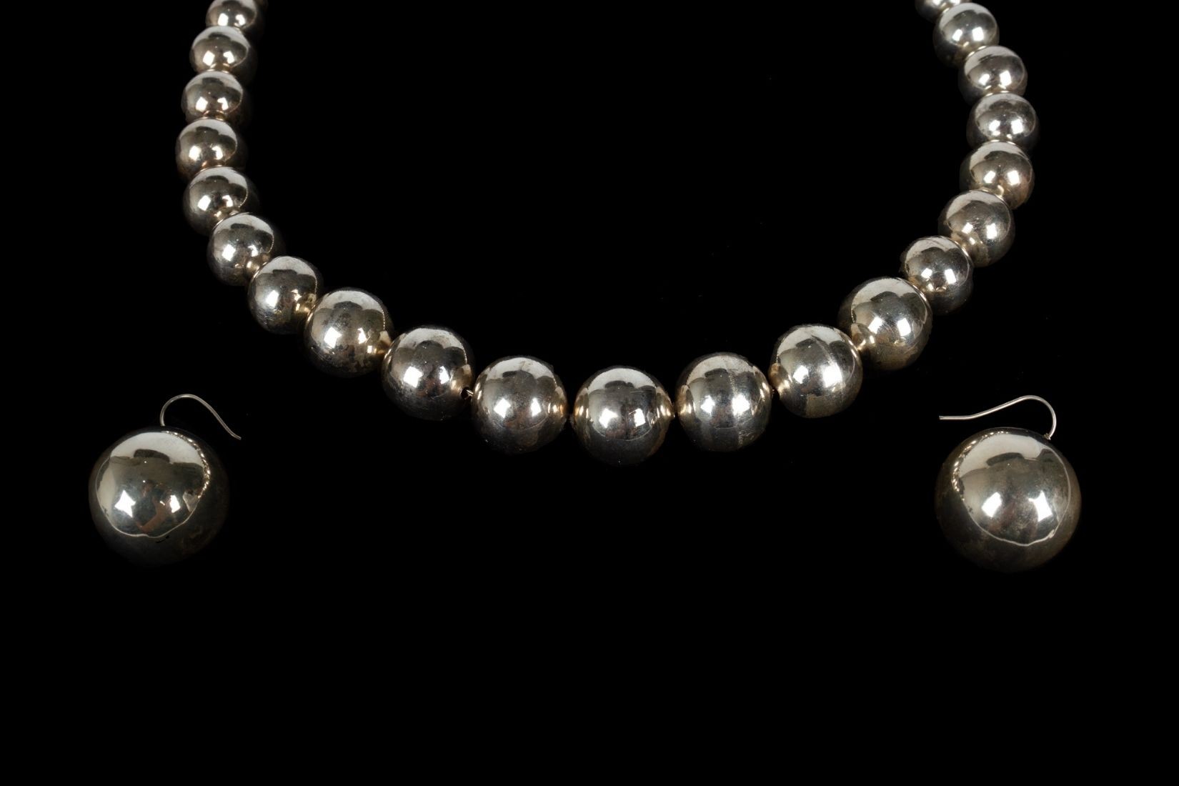 Juego de aretes y collar de plata. Artesano Fernando Hernández. Taxco, Gro. Col. Part. (Foto: EKV).