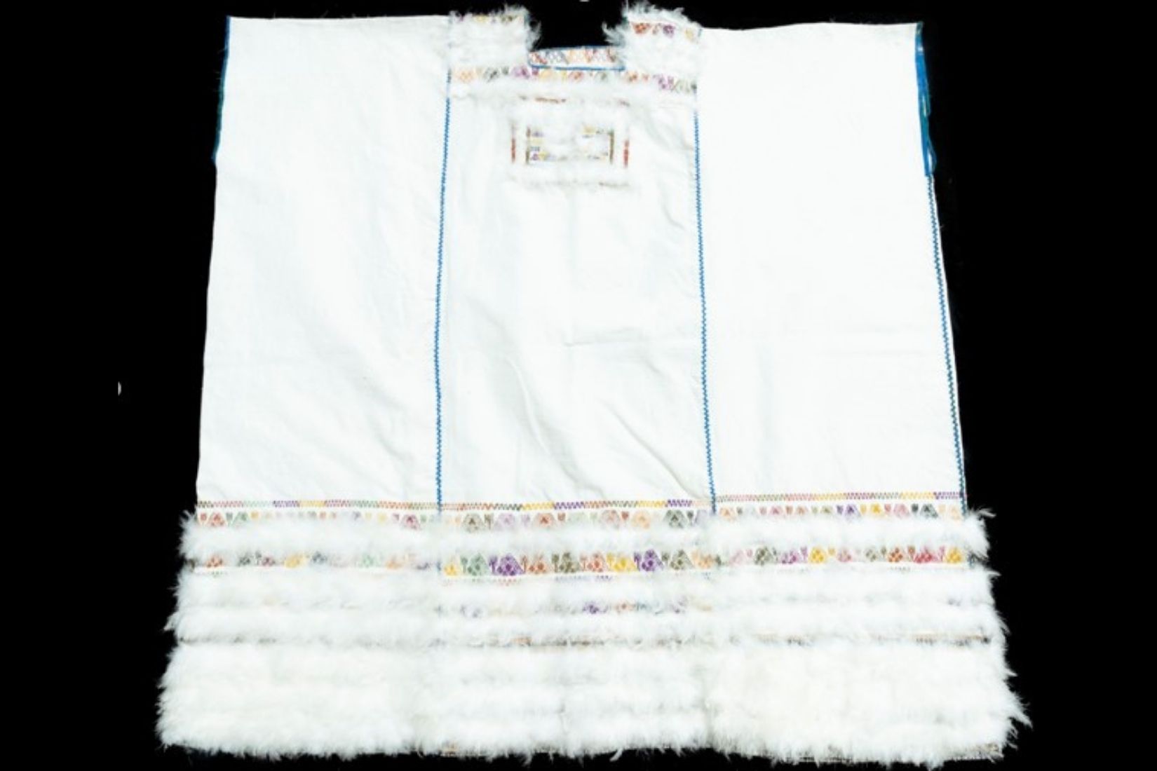 Huipil ceremonial de boda. Algodón, lana y plumas. Artesanas Petrona y Pascuala Hernández. Zinacantán, Chis. 2000. Col. AmigosMAP. (Foto: EKV).