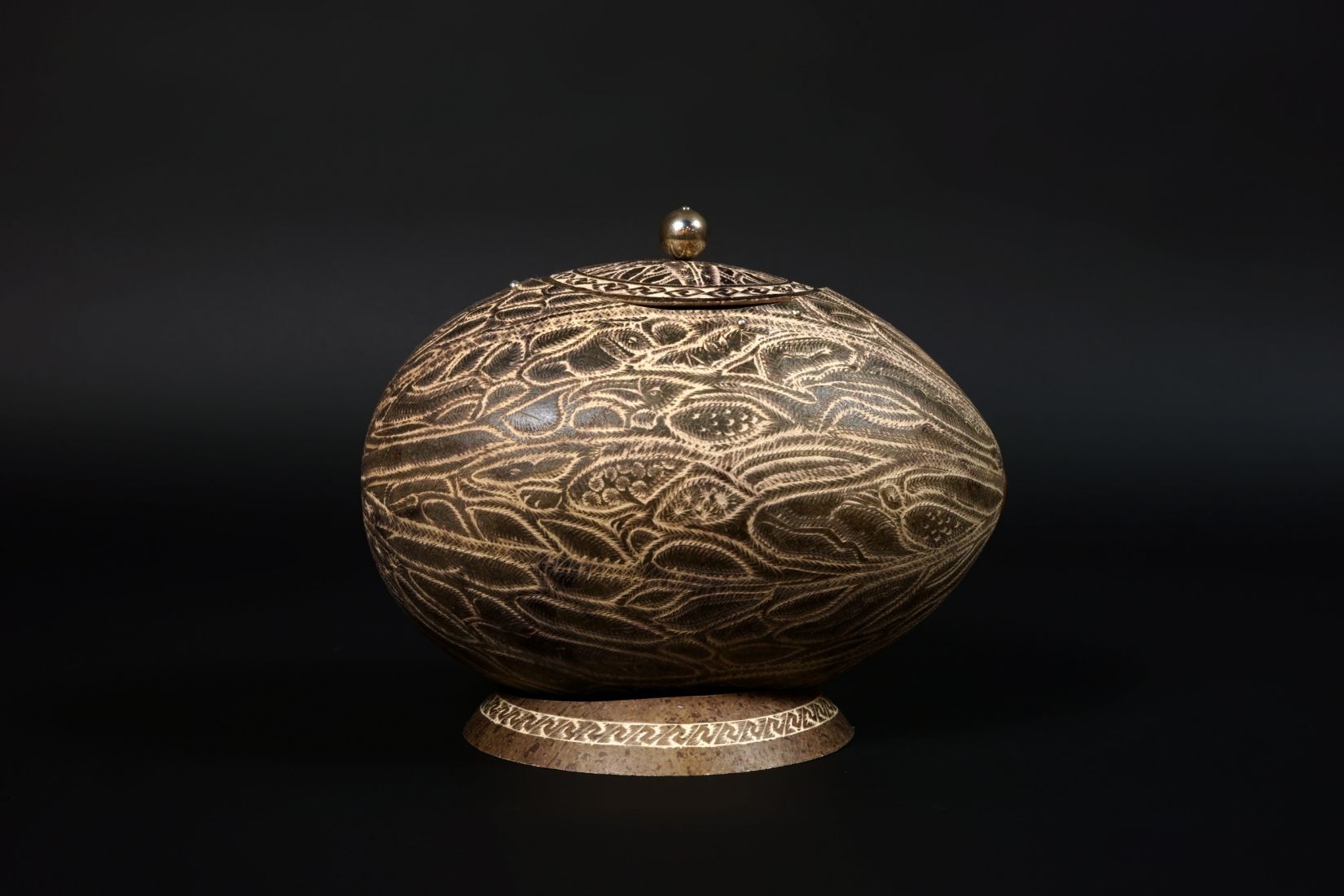 Canto antiguo de madera y pidera tallada con hoja de oro. Artesano Ricaro Molina Sarmiento y Arno Avilés. 2017. (Foto: Carlos Contreras de Oteyza).