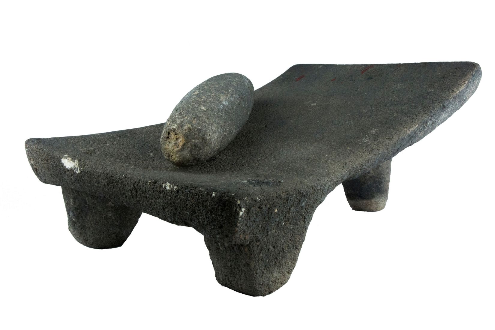 Metate con metlapil. Autor Desconocido. Ocotlán de Morelos, Oax. Inicios del s. XX. Donante Rodolfo Morales. Col. AmigosMAP. (Foto: Estudio Kristina Velfu, EKV).