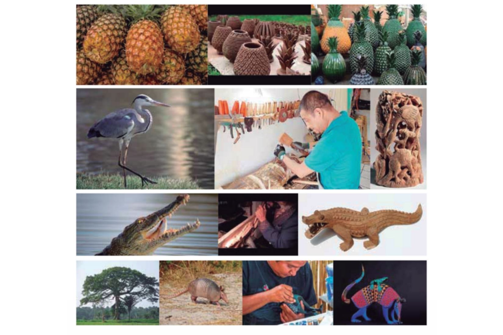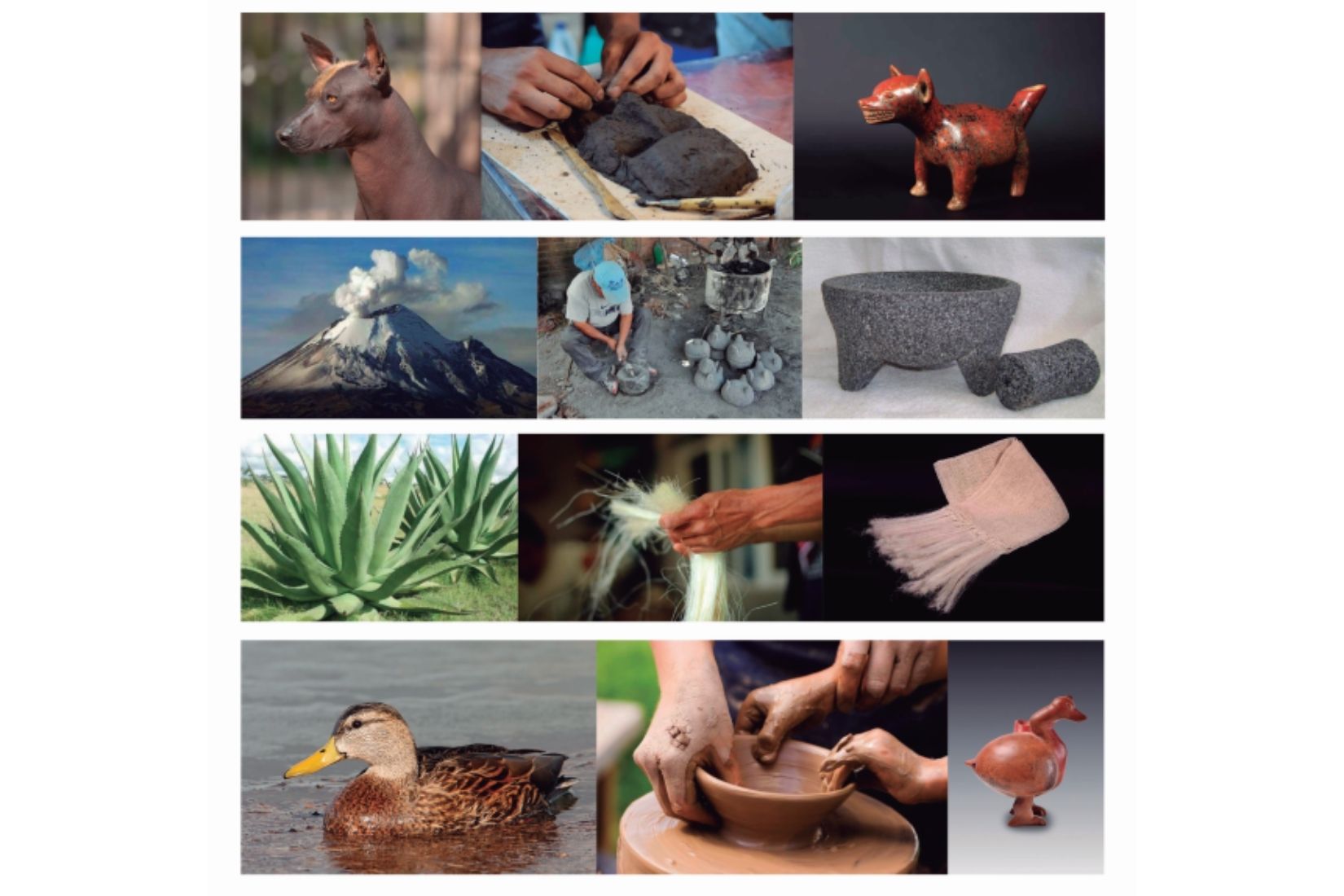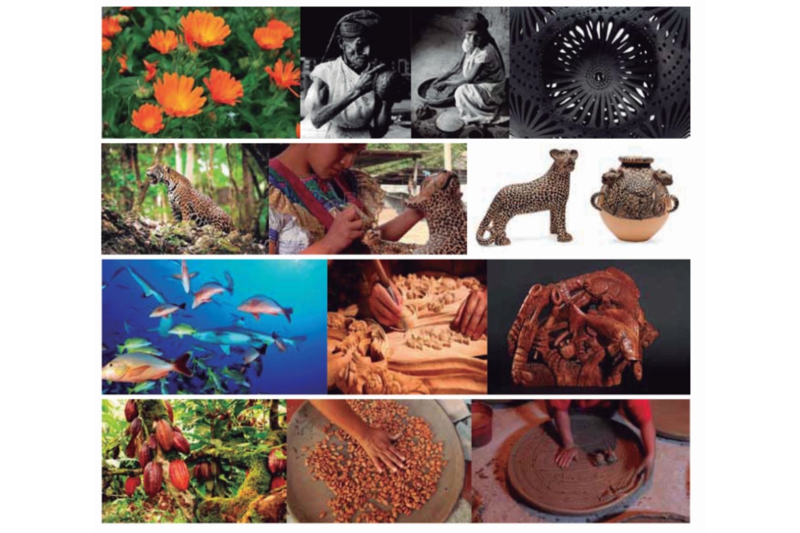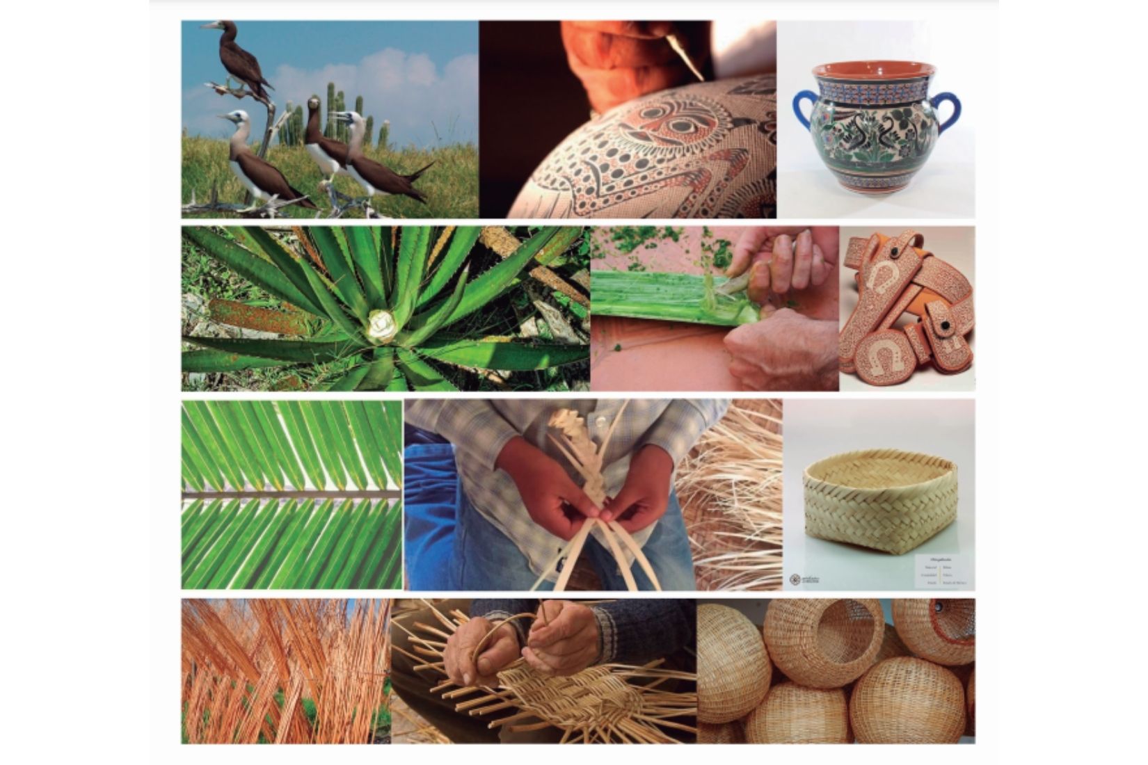 Collage de procesos artesanales utilizando elementos naturales.
