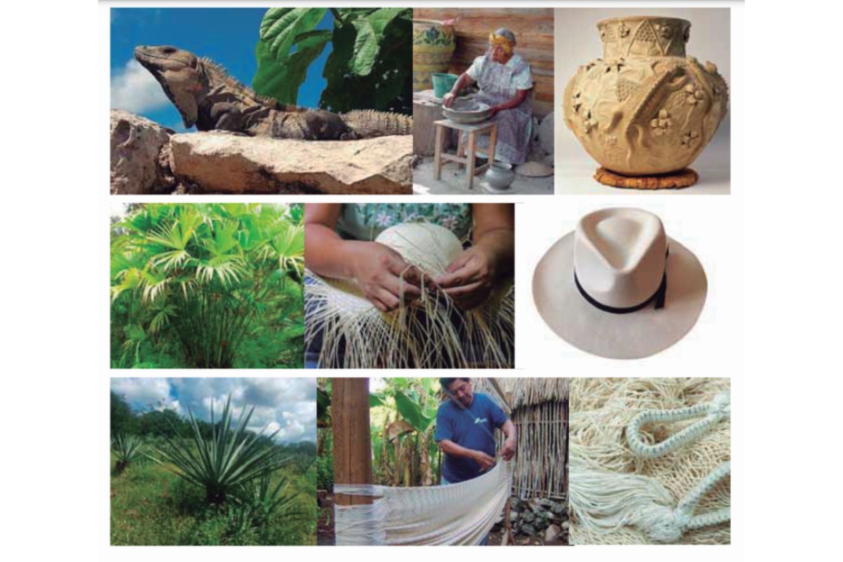 6. Transición tierra-mar y áreas inundables (manglares, plantas acuáticas y de pantano). Las zonas ecológicas con mayor número de especies que se destinan a fines artesanales son la tropical cálido subhúmeda, con 204 especies (198 plantas y 6 animales), y la árida y semiárida, con 202 (185 plantas y 17 animales).