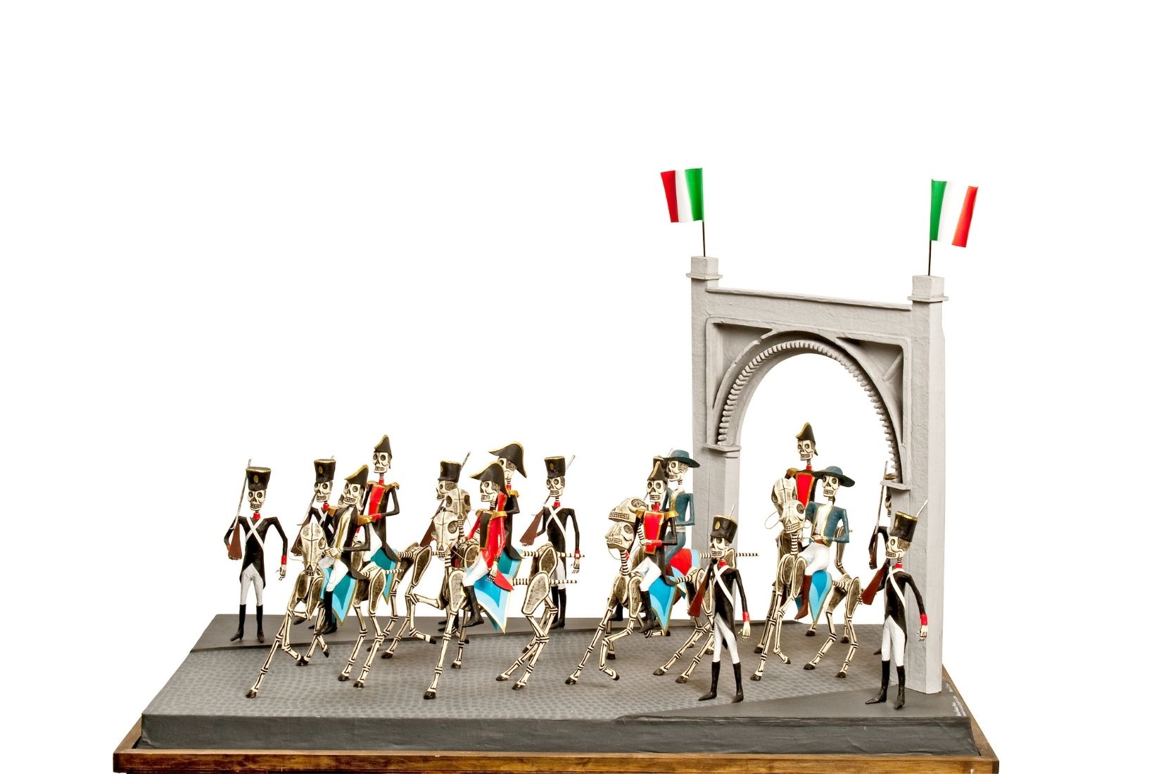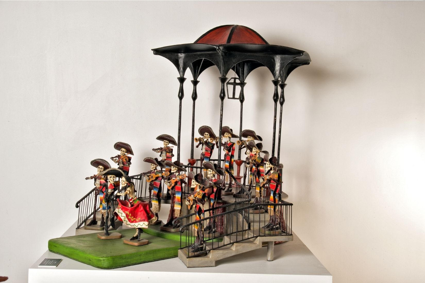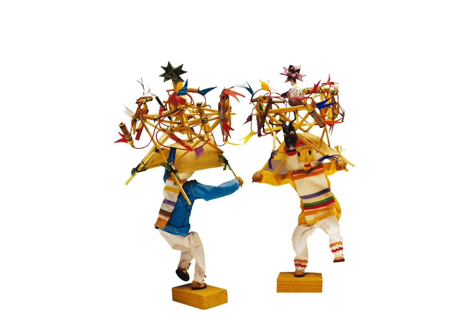 Muñecas encuartadas, carruseles, caballitos, sonajas, máscaras, antifaces y cascos de carnaval.