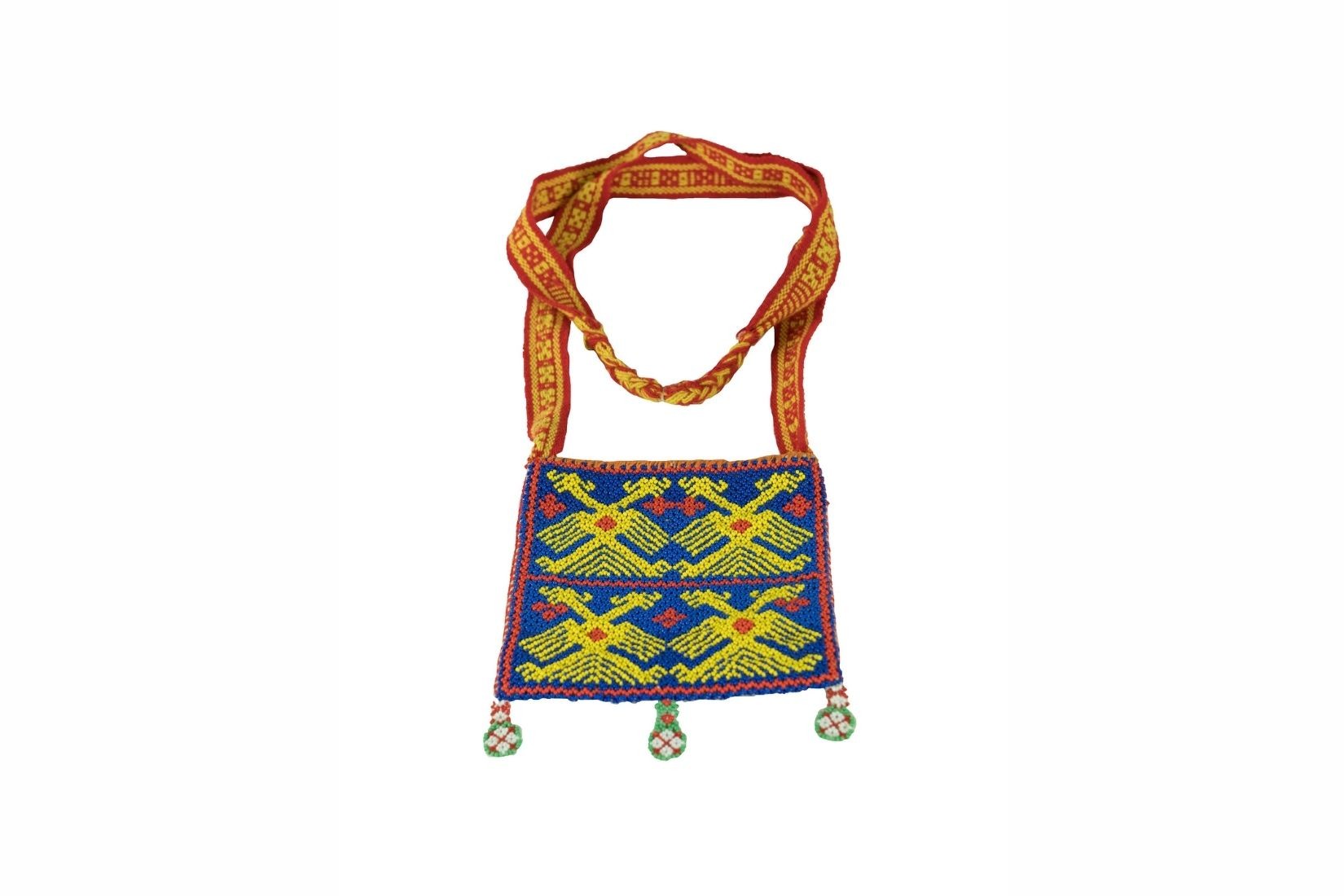 Morral wixárika o huichol, de chaquira cosida a mano y textil. Artesano y procedencia desconocidos. Col. MAP. (Foto: EKV).