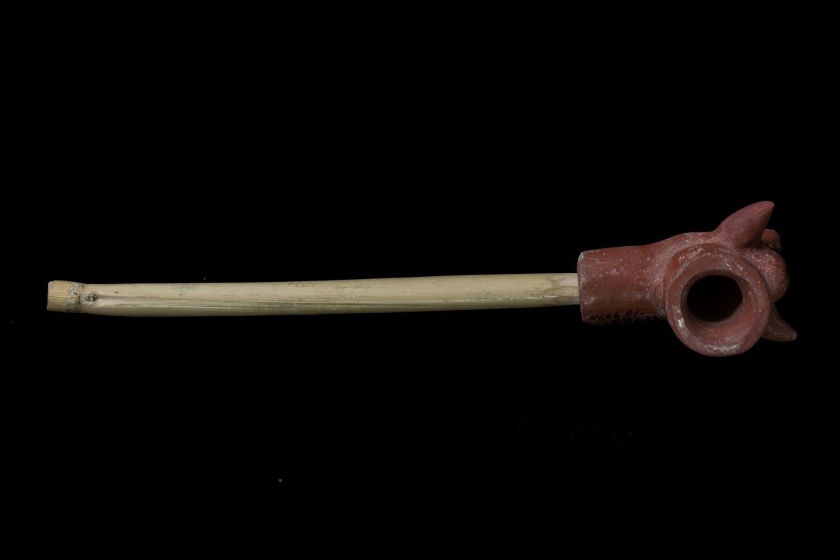 Pipa ceremonial de barro modelado y madera. Artesano desconocido. Durango. 1975. Col. María Teresa Pomar. (Foto: EKV).