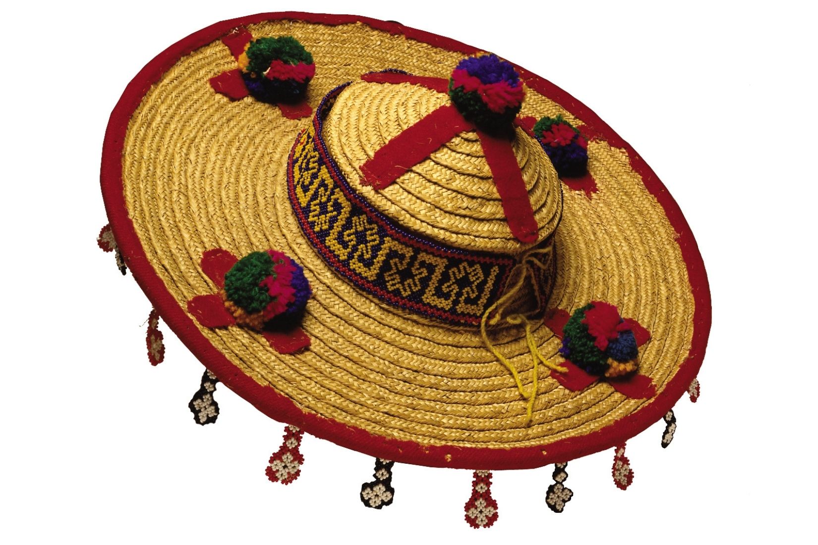 Sombrero huichol de palma tejida, estambre de lana y chaquira. Artesano desconocido. Jalisco. Col. Populart. (Foto: Nicola Lorusso).