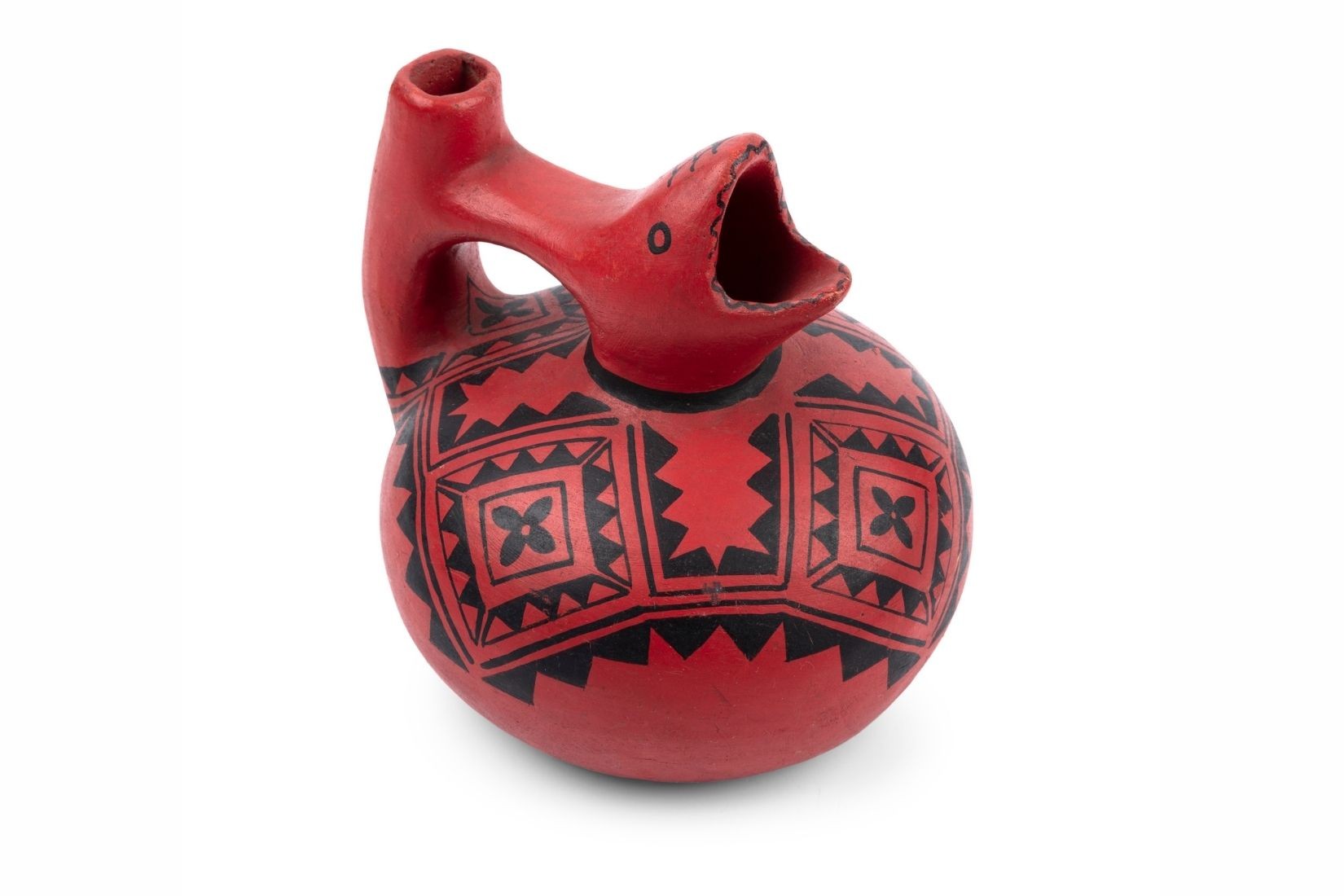 Vasija con vertedera. Barro modelado, bruñido y decorado. Artesano desconocido. Durango. Col. Miguel Abruch. (Foto: GLR Estudio).