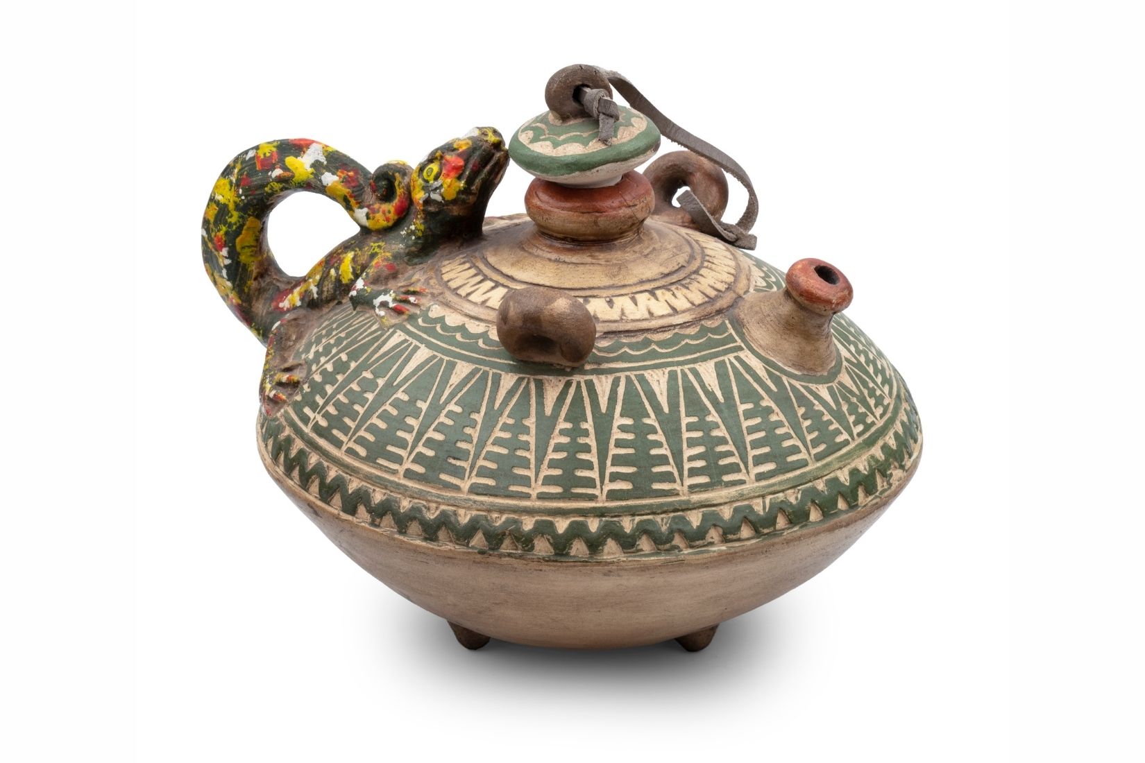 Vasija con lagartija. Barro rayado, decorado y policromado. Artesano desconocido. Durango. Col. Miguel Abruch. (Foto: GLR Estudio).