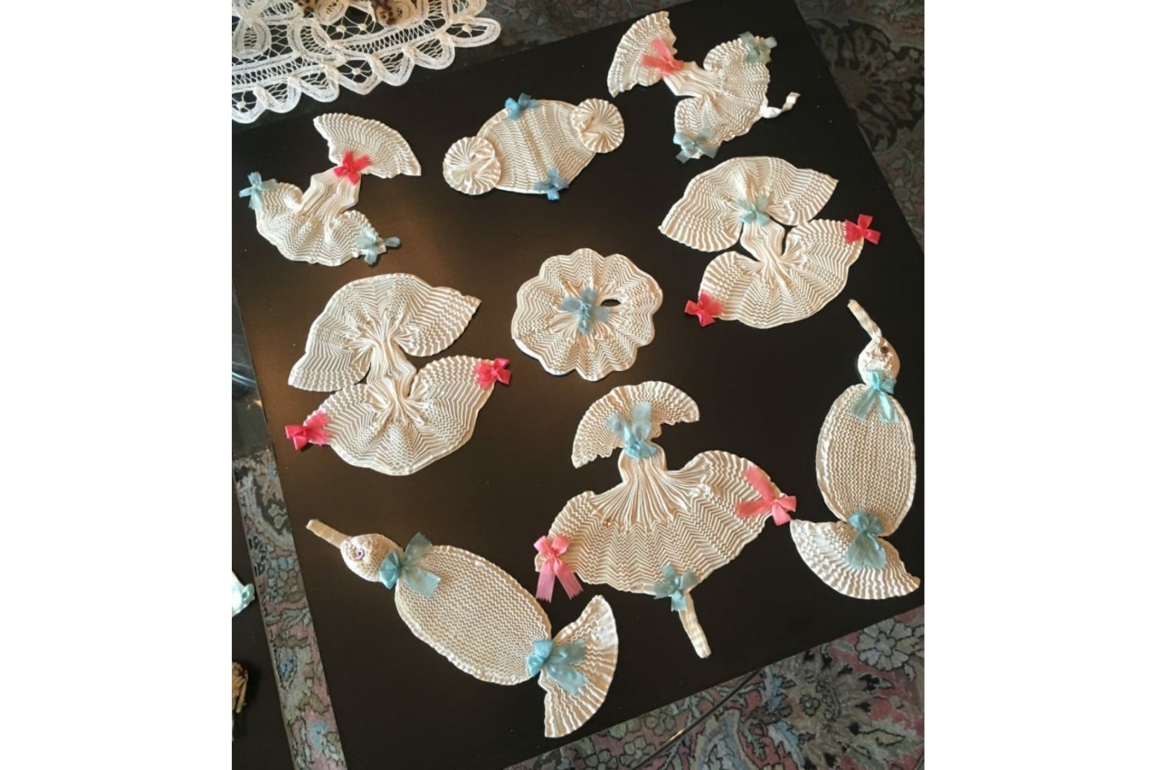Los frailes que arribaron a la Nueva España a partir de 1525 adaptaron a sus necesidades esta técnica del ingenio local. En tiempos anteriores a la Colonia, a estas labores se les llamaba mosaicos de plumas, y a Antes de la Conquista, las plumas se destinaban a la confección de penachos para guerreros, y los mosaicos servían para componer temas religiosos, parte medular de la cosmovisión indígena. Este trabajo conquistó a los españoles y a los europeos en general, que jamás lo habían visto, y constituyó uno de los tesoros más preciados de los que encontraron en el Nuevo Mundo.