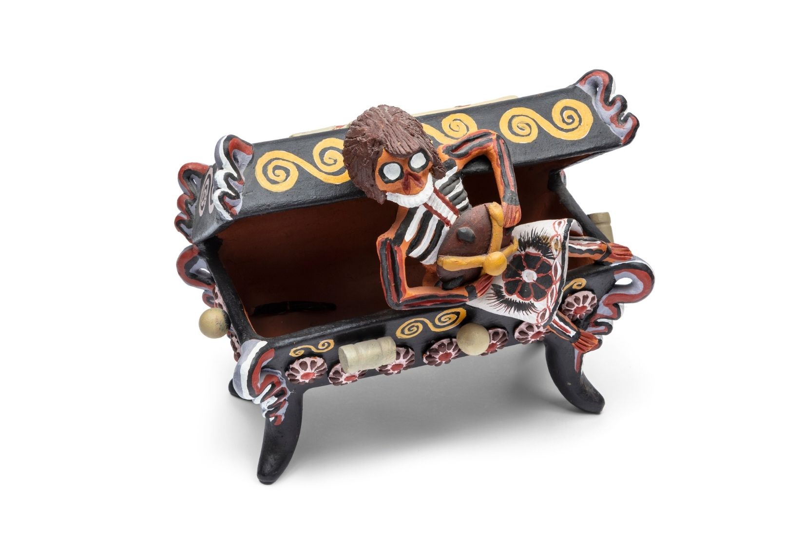 Bebedores de pulque. Piezas de cuerno recortado y esgrafiado sobre base de madera. Artesano desconocido. San Antonio de la Isla, EdoMex. Col. Ma. Teresa Pomar. (Foto: Estudio Kristina Velfu, EKV).