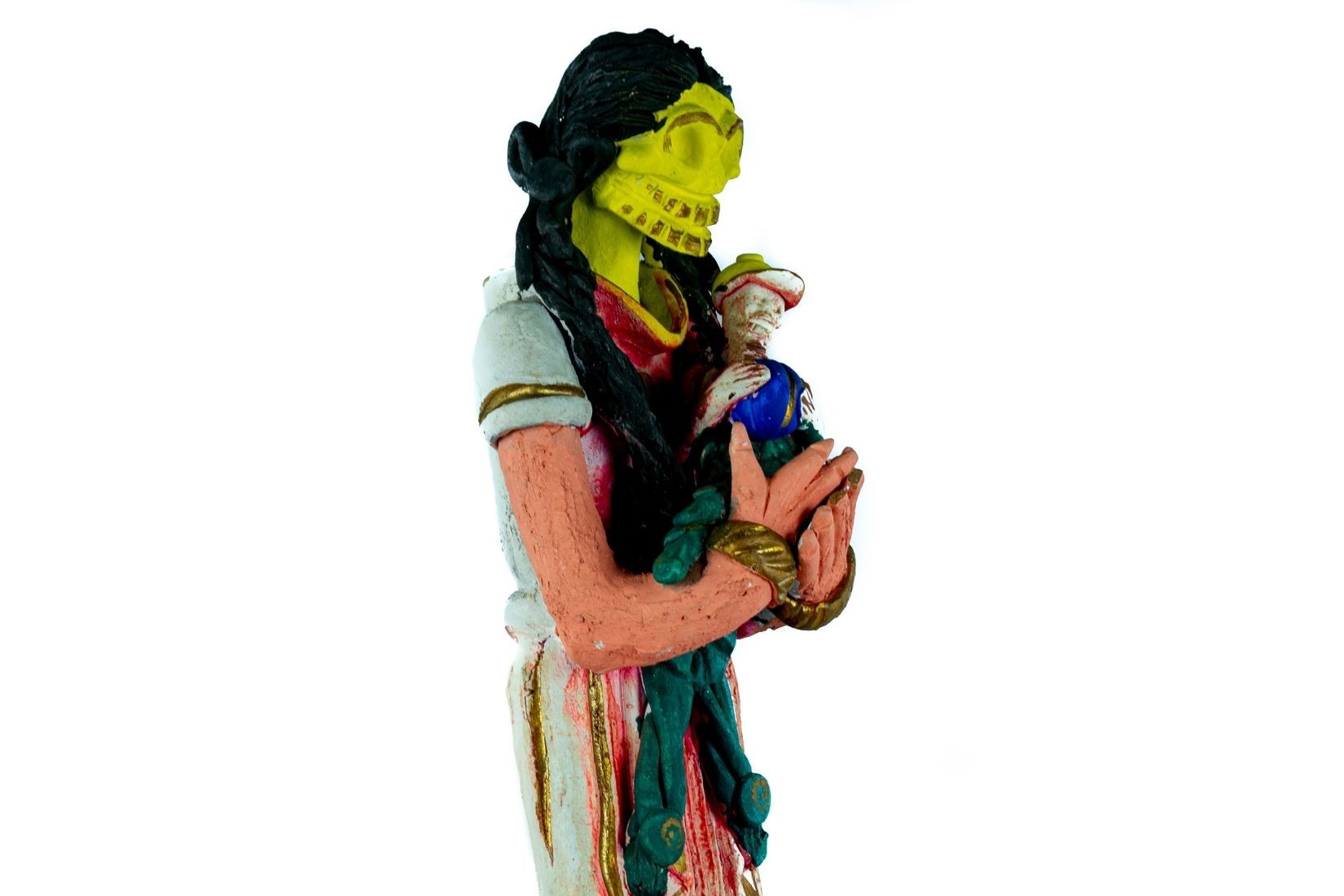 Calavera mujer con niño en brazos. Barro modelado y policromado. Artesano desconocido. Metepec, EdoMex. Donante Martin Foley. Col. AmigosMAP. (Foto: EKV).