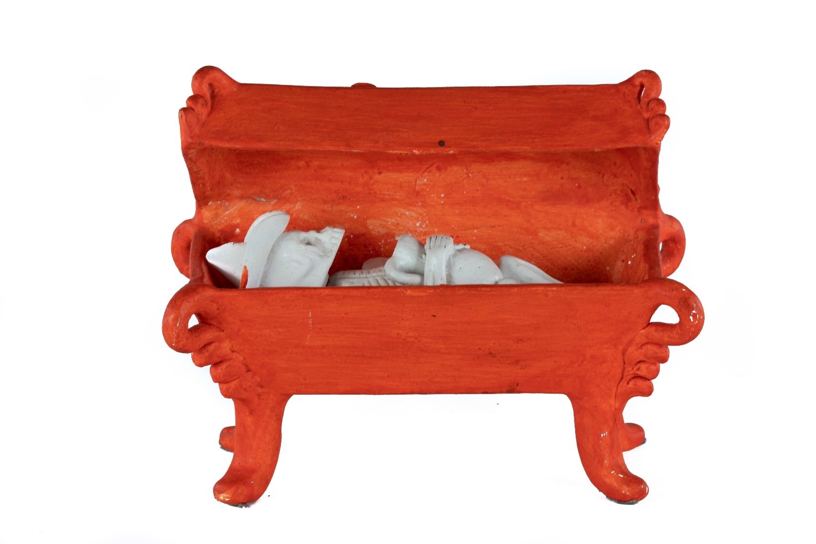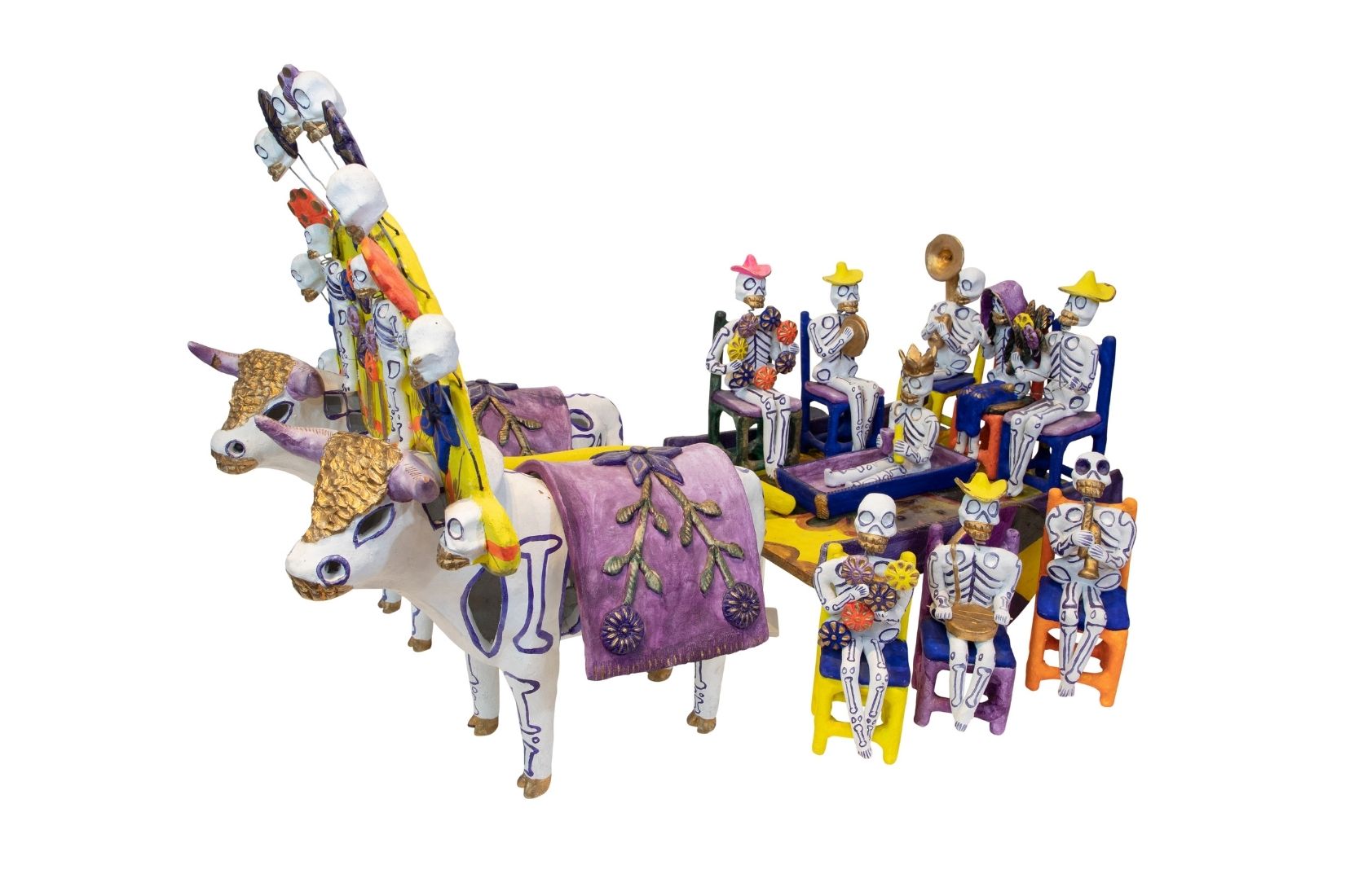 Carreta con velorio, Barro modelado y policromado. Artesano desconocido. Metepec, EdoMex. Donante Martin Foley. Col. AmigosMAP. (Foto: EKV).