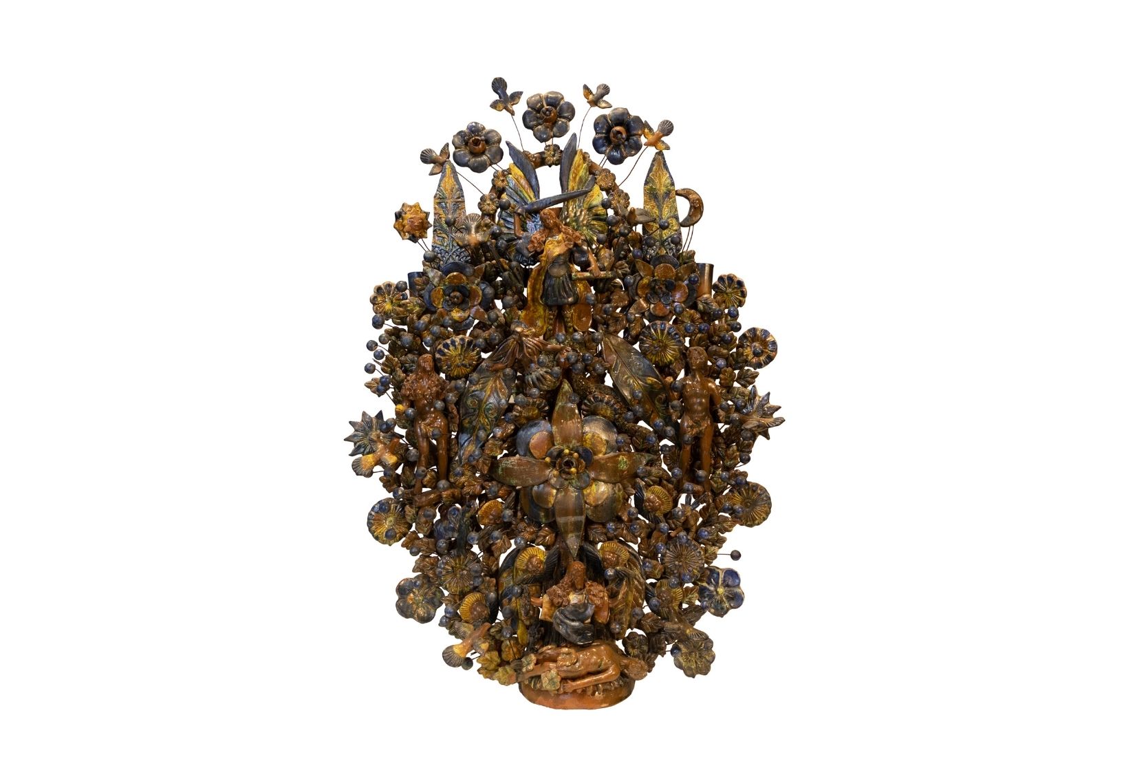 Árbol de la vida de barro moldeado, modelado, policromado y decorado al pastillaje. Artesano Alfonso Soteno Fernández. Metepec, EdoMex. Col. Part. (Foto: EKV).