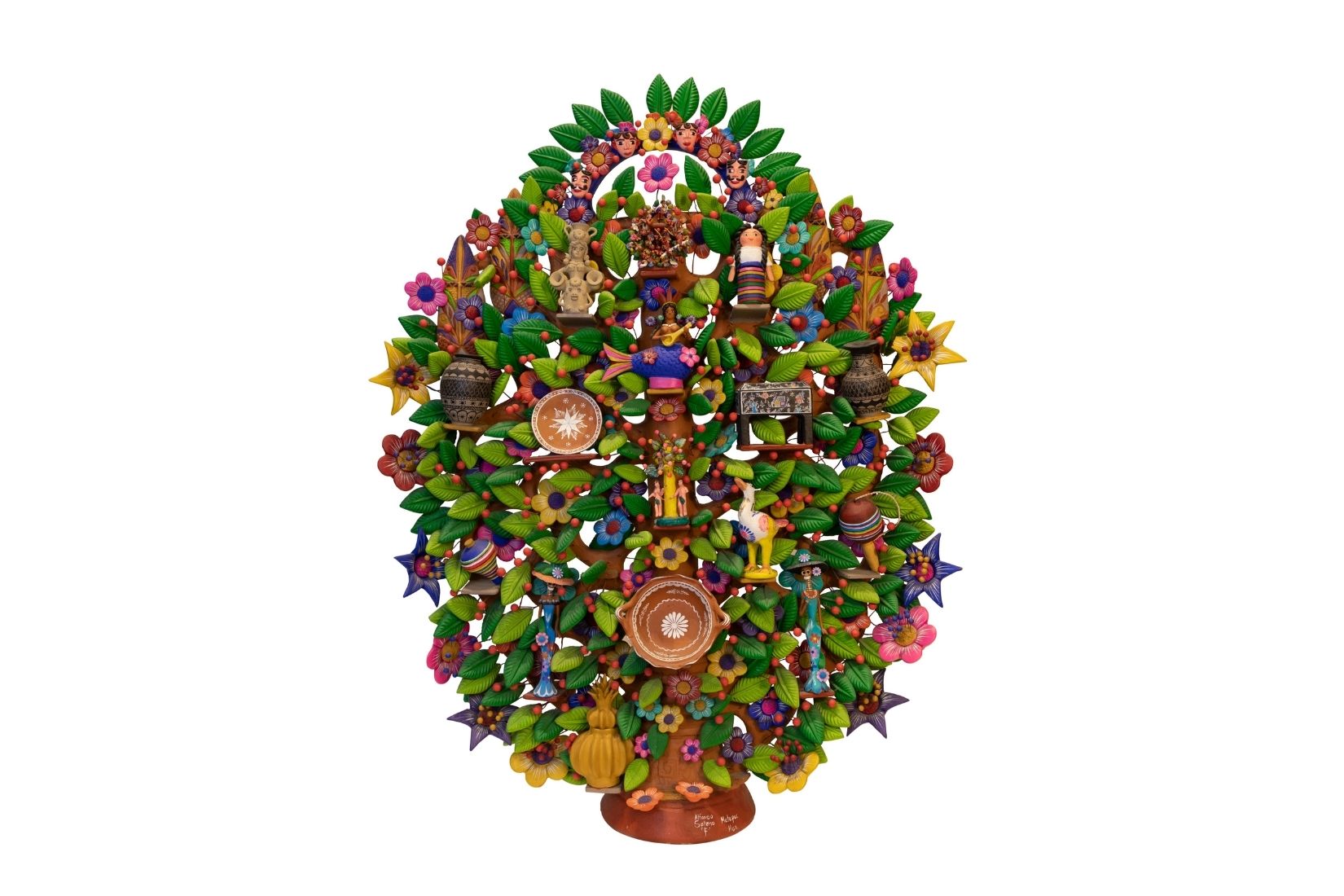 Árbol de la vida de barro moldeado, modelado, policromado, vidriado y decorado al pastillaje. Artesano desconocido. Metepec, EdoMex. Col. Manuel Arango Arias. (Foto: EKV).
