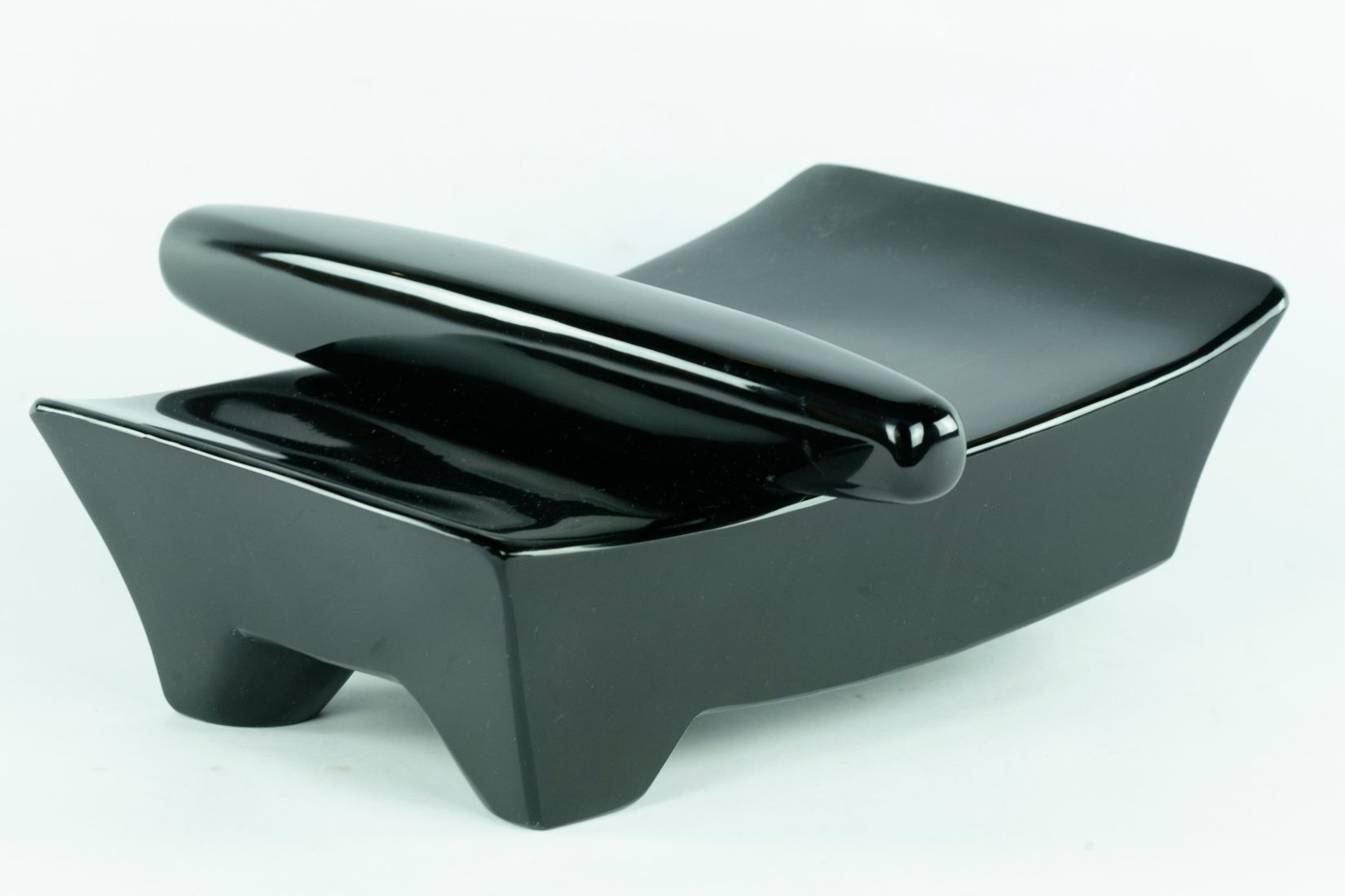 Vasija de obsidiana tallada. Artesano Agapito Hernández. Teotihuacán, EdoMex. 2006. Donante Agapito Hernández. Col. AmigosMAP. (Foto: EKV).
