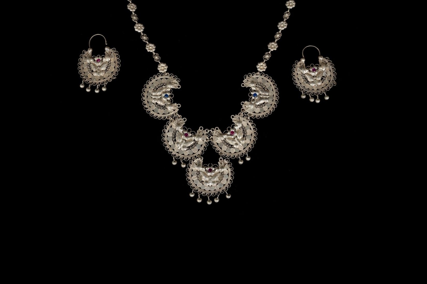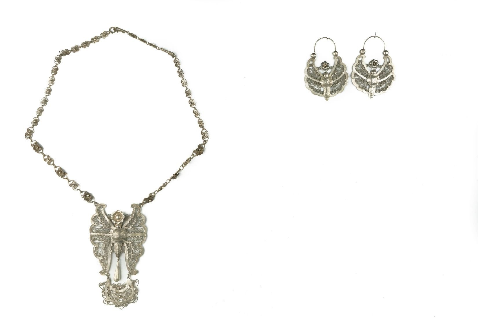 Juego de collar y aretes de filigrana en plata. Artesana Ma. De Jesús Barbosa Badillo. San Felipe del Progreso, EdoMex. Col. Part. (Foto: EKV).