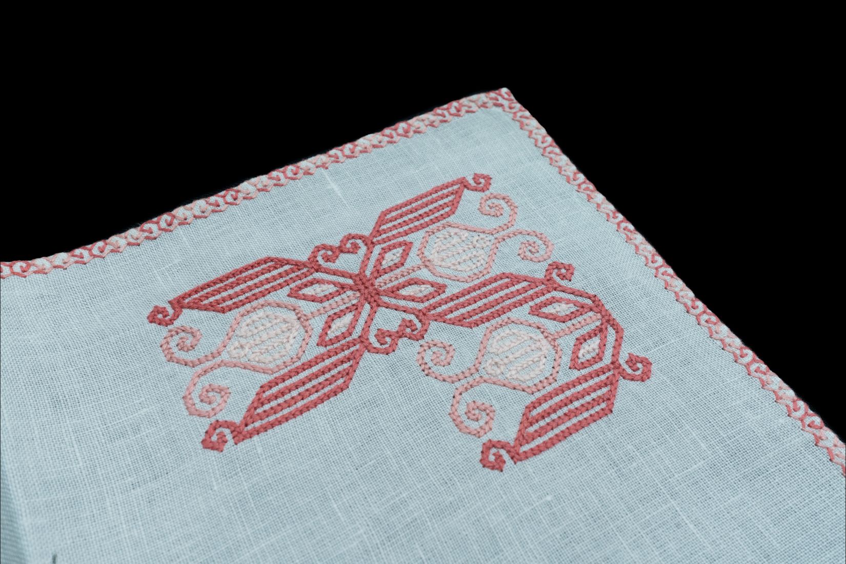 Detalle de mantel de lino bordado a mano. Artesanas Bordadora mazahuas. Estado de México. 2005. Col. Fomento Cultural Banamex. (Foto: EKV).