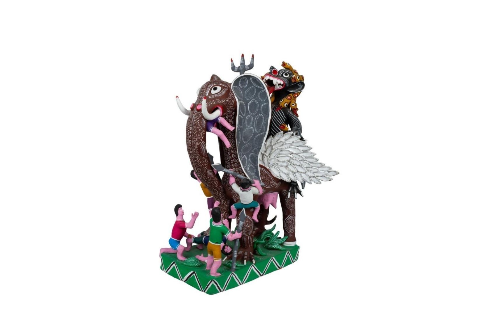 Campesinos bajo árbol con nahuales. Barro petatillo. Artesano José Antonio Mateos Suárez Tonalá, Jal. Col. Miguel Abruch. (Foto: GLR Estudio).