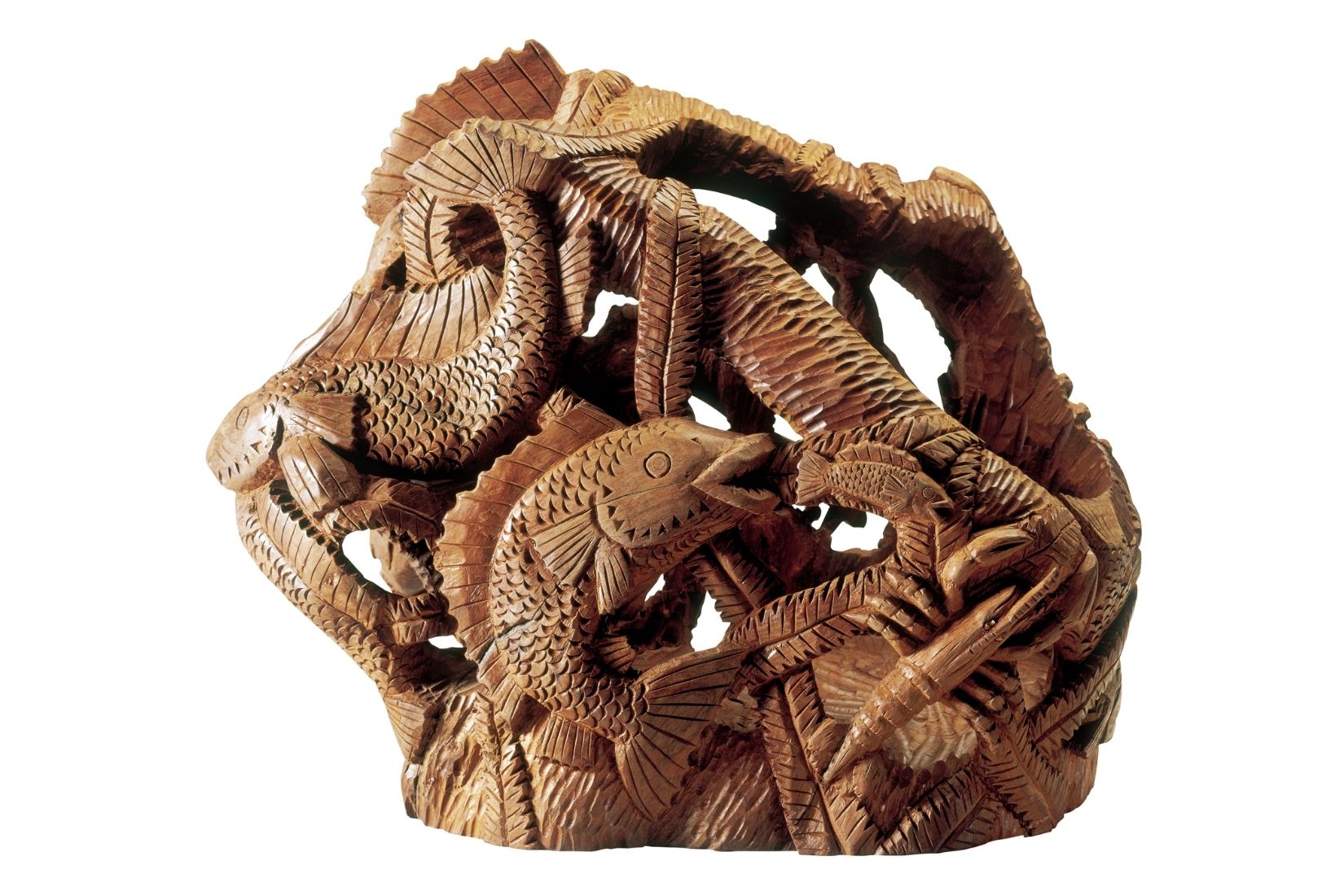 Peces. Raúl de Jesús Espinosa Vázquez, Papantla, Veracruz, Madera ahuecada y tallada, Colección particular // Fotografía: Nicola Lorusso/MAP