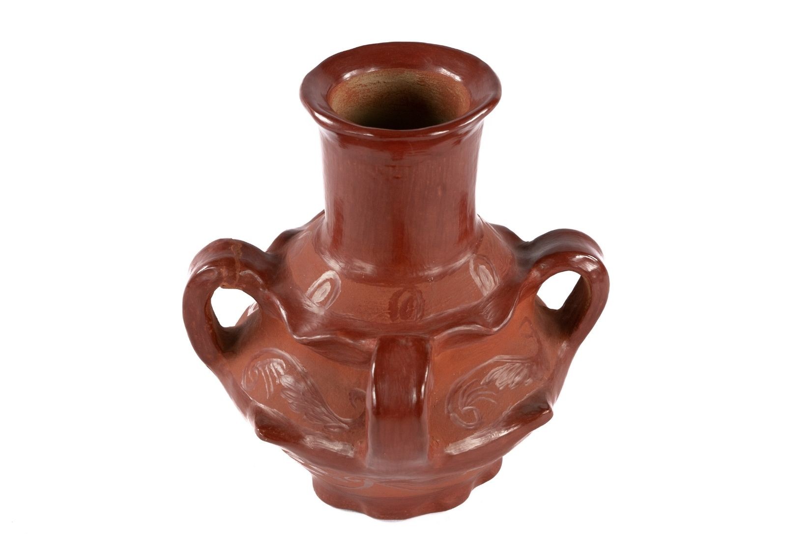 Florero de 4 asas en barro engobado y pastillaje. Artesano desconocido. Guanajuato. 2000. Col. AmigosMAP. (Foto: EKV).