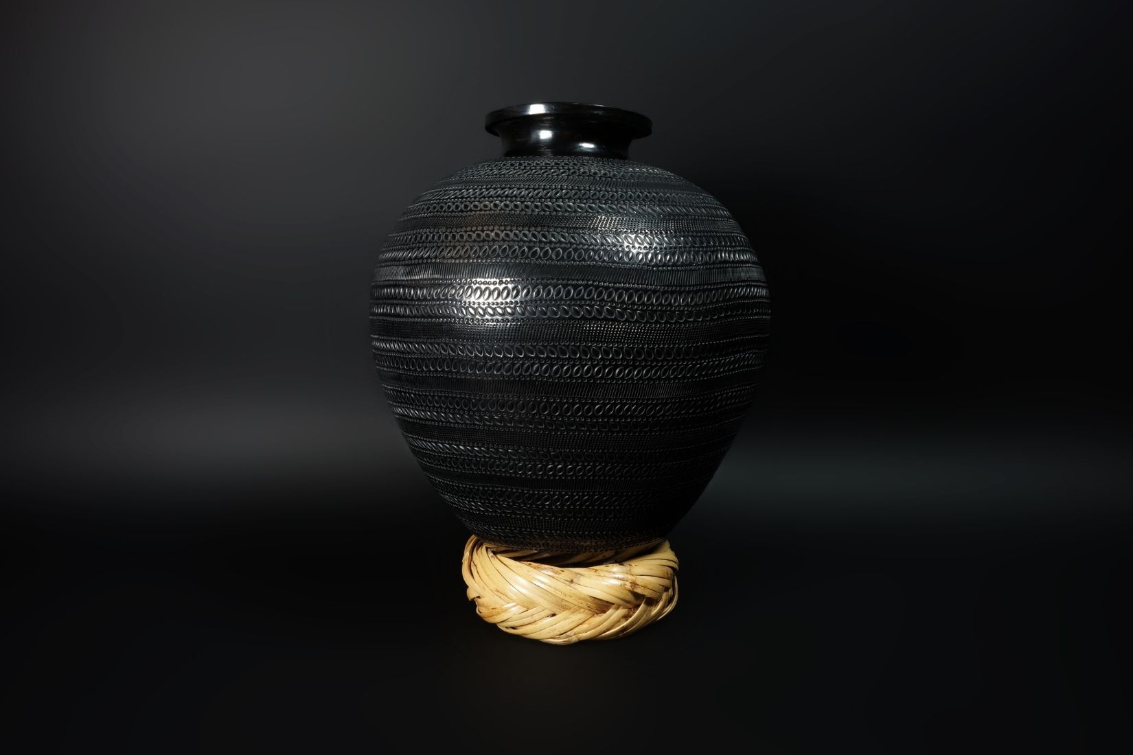 Cántaro en barro modelado y bruñido. Artesana Irma Canseco Morgan. San Bartolo Coyotepec, Oax. Col. Part. (Foto: Jasso).