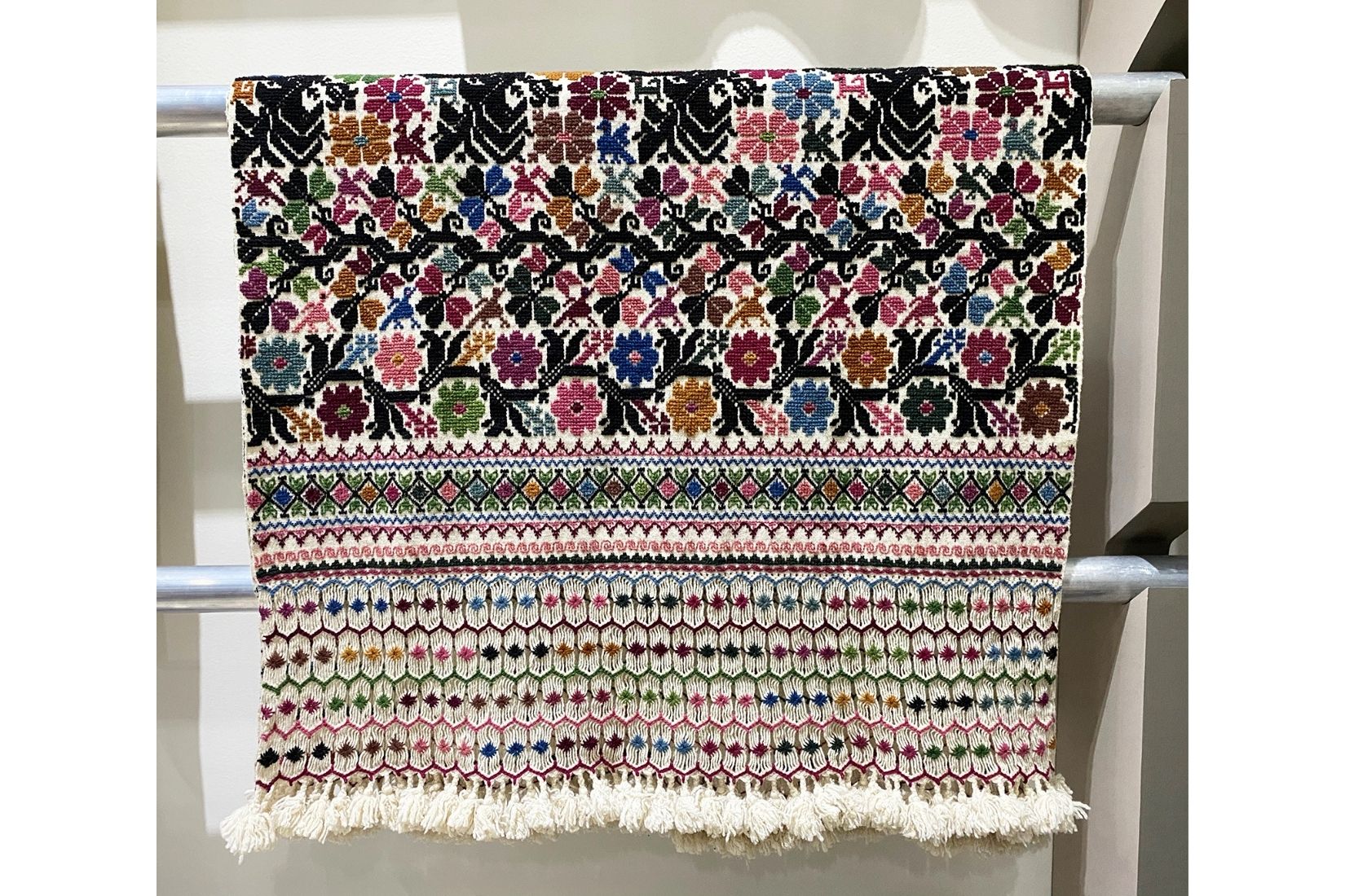 Rebozo, en telar de cintura y bordado. Artesana Cecilia Lino Bello. Hueyapan, Pue. Tienda MAP.