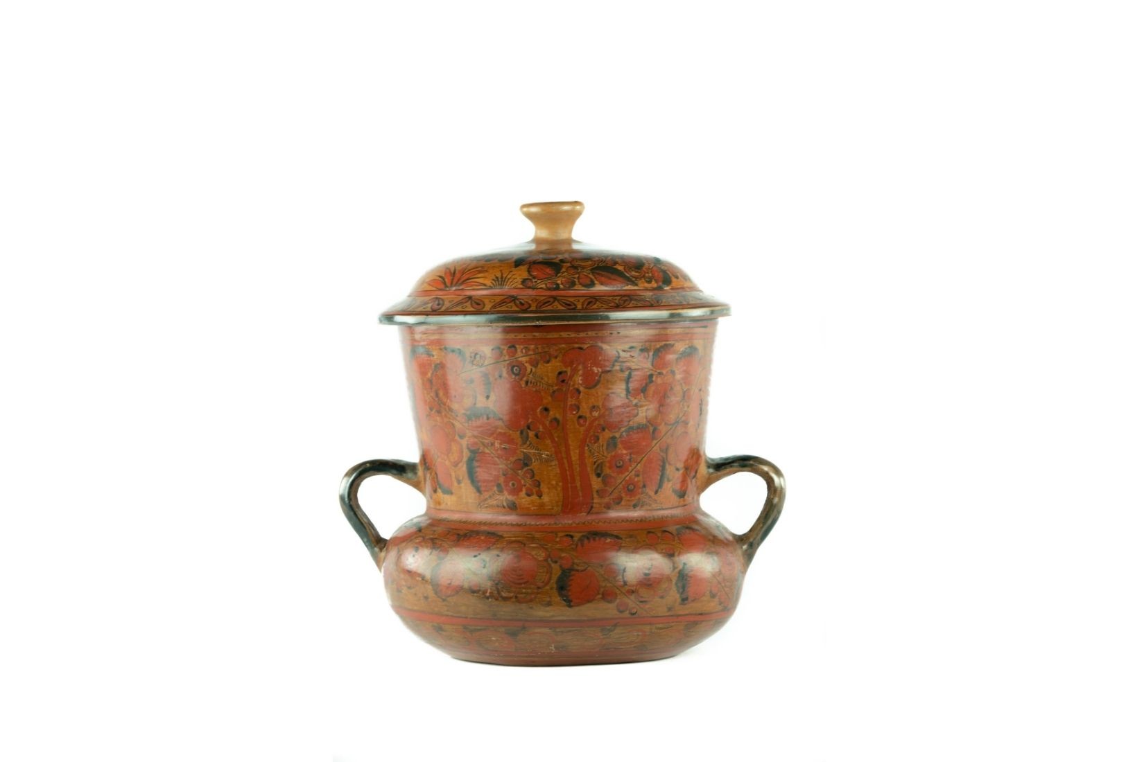 Olla con tapa en barro modelado y bruñido, decorado al pincel con tierras. Artesano desconocido. Tonalá, Jal. 1950. Col. Elena Martínez de Aldana, pieza donada a AmigosMAP. (Foto: EKV).