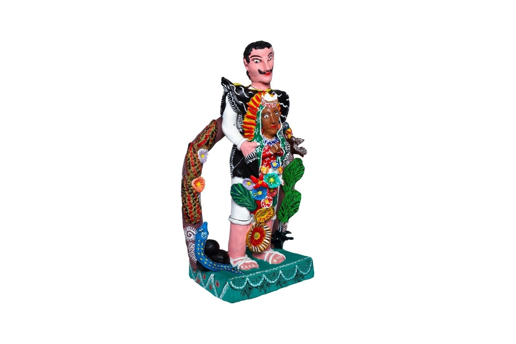 Juan Diego con Virgen de Guadalupe, barro modelado y policromado. Artesano desconocido. Ocumicho, Mich. Donante Mercedes Iturbe. Col. AmigosMAP. (Foto: EKV).