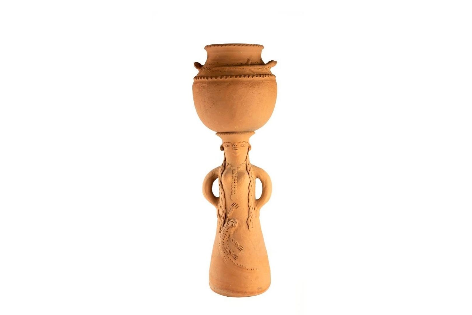 Enfriadora decorada con mujer e iguanas, barro modelado y pastillaje. Artesano y procedencia desconocidos. Col. Populart. (Foto: EKV).