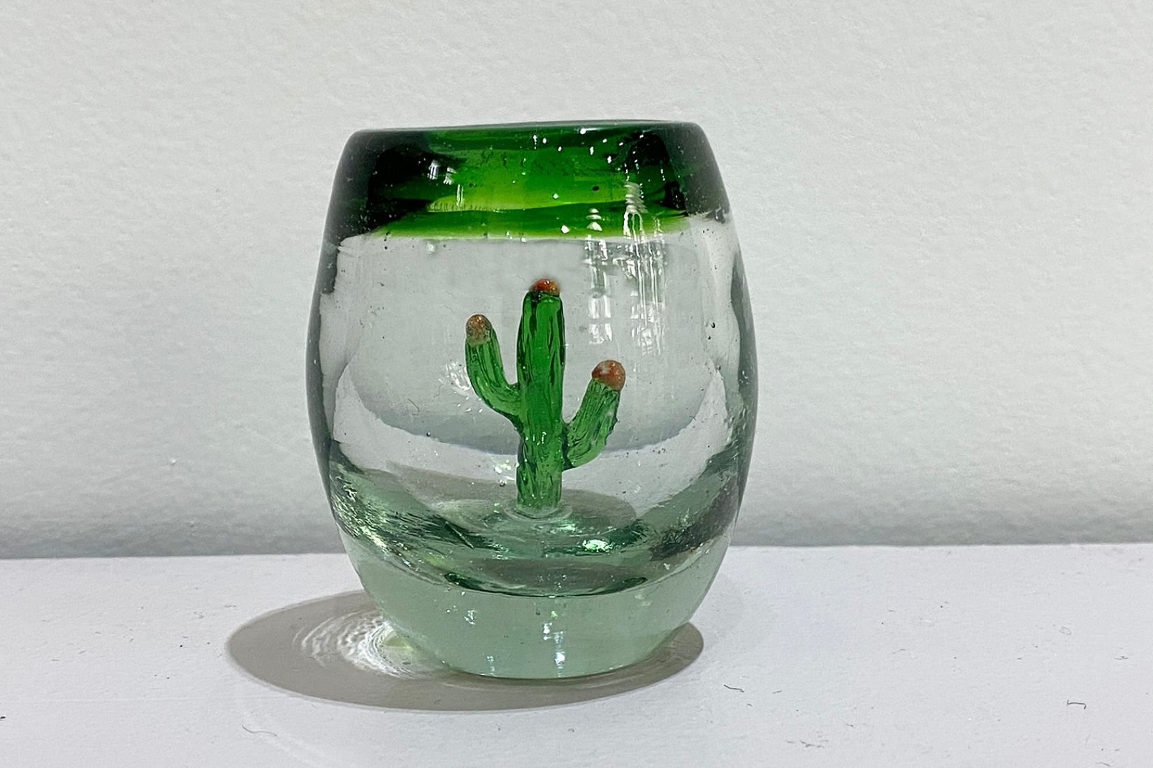 Barrilito tequilero, vidrio soplado. Artesano desconocido. Tonalá, Jal. 2020. Tienda MAP.