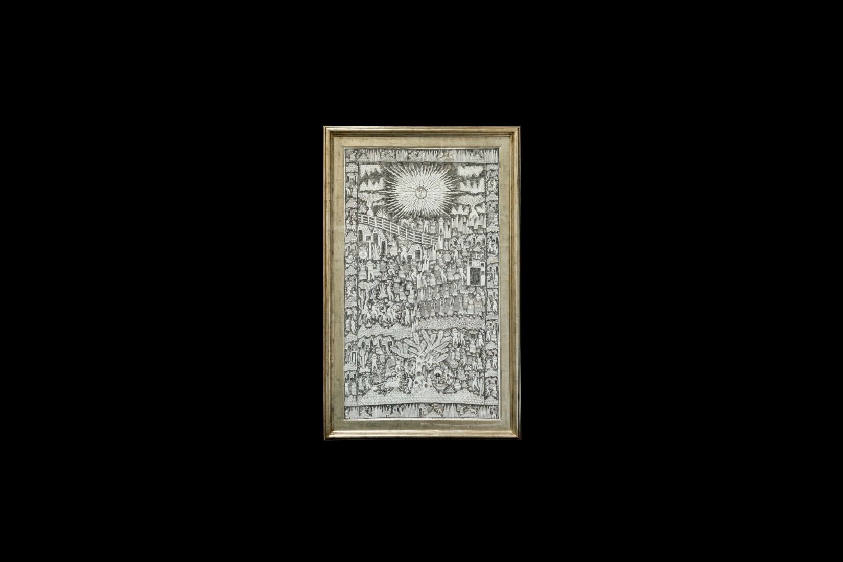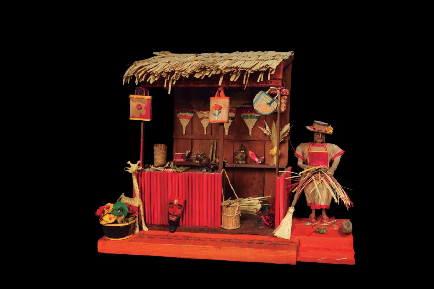 Paisaje en popotillo pintado y recortado. Artesano y procedencia desconocidos. Donante Rodrigo Rivero Lake. Col. AmigosMAP. (Foto: EKV).