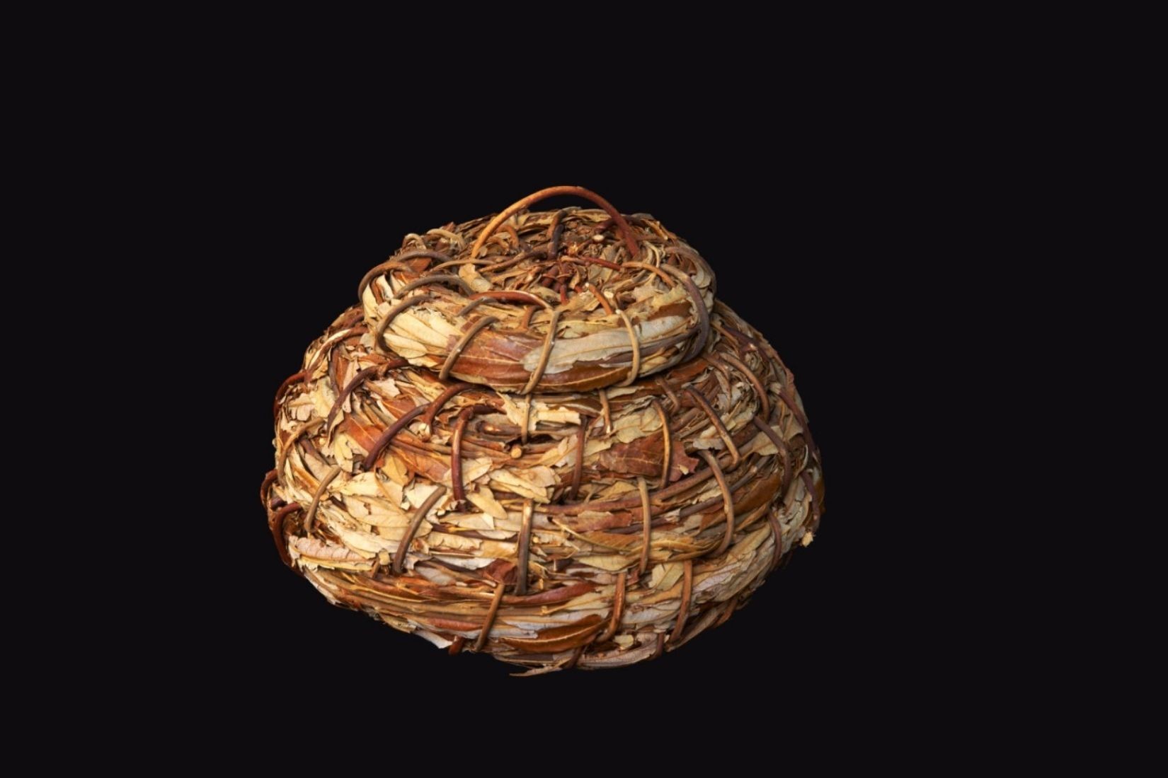 Cesta con tapa en vara de sauce tejida. Etnia Kumiai, B.C. Col. Ganfer. (Foto: Jasso).