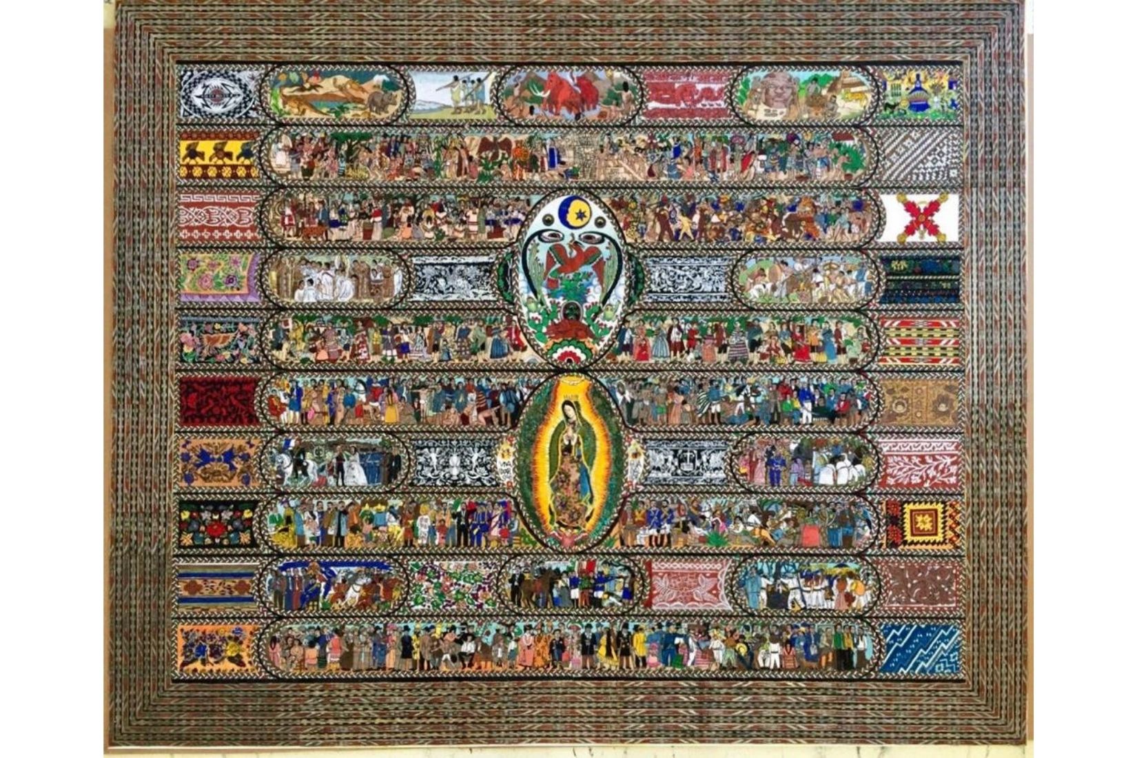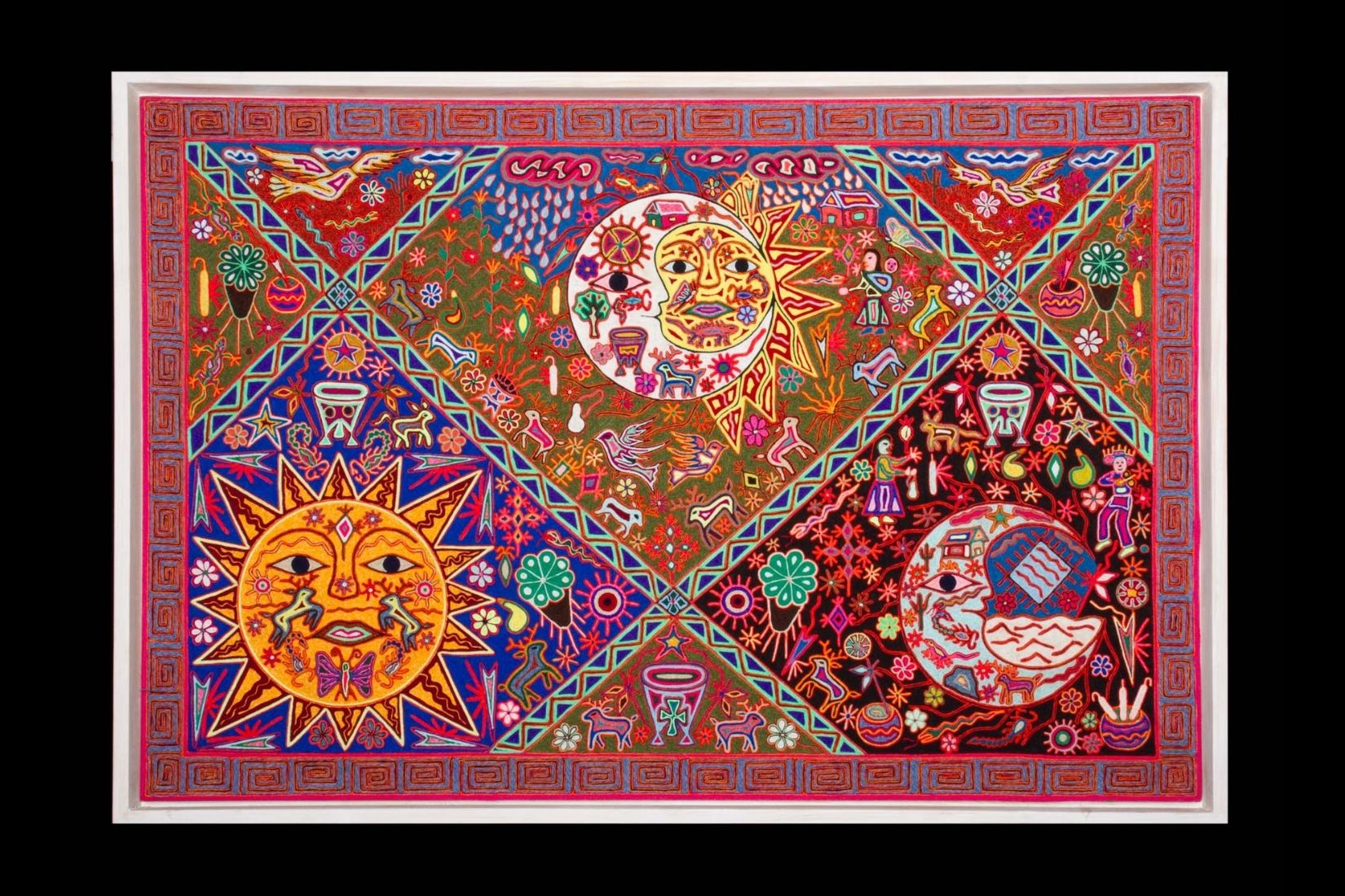 Las tres imágenes, estambre sobre madera y cera de Campeche (tabla huichola). Artesano Rosendo López García. Jalisco. Col. Part. (Foto: EKV).
