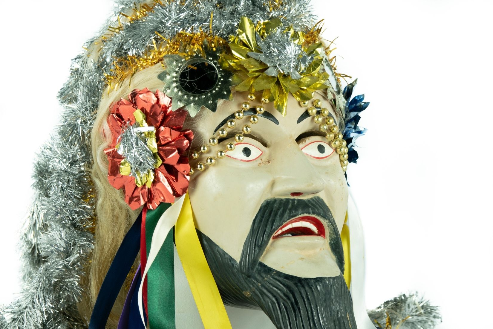 Máscara tallada en madera con ixtle, papel y listones. Artesano y procedencia desconocidos. Col. Populart. (Foto: EKV).