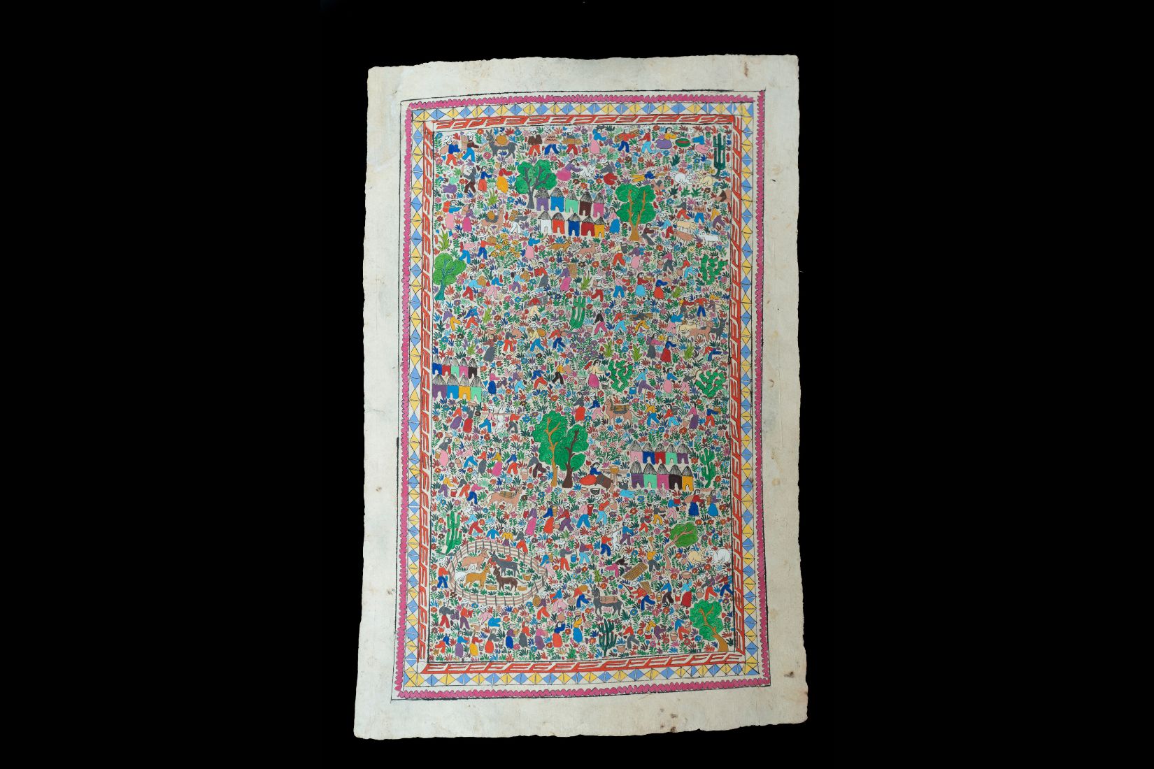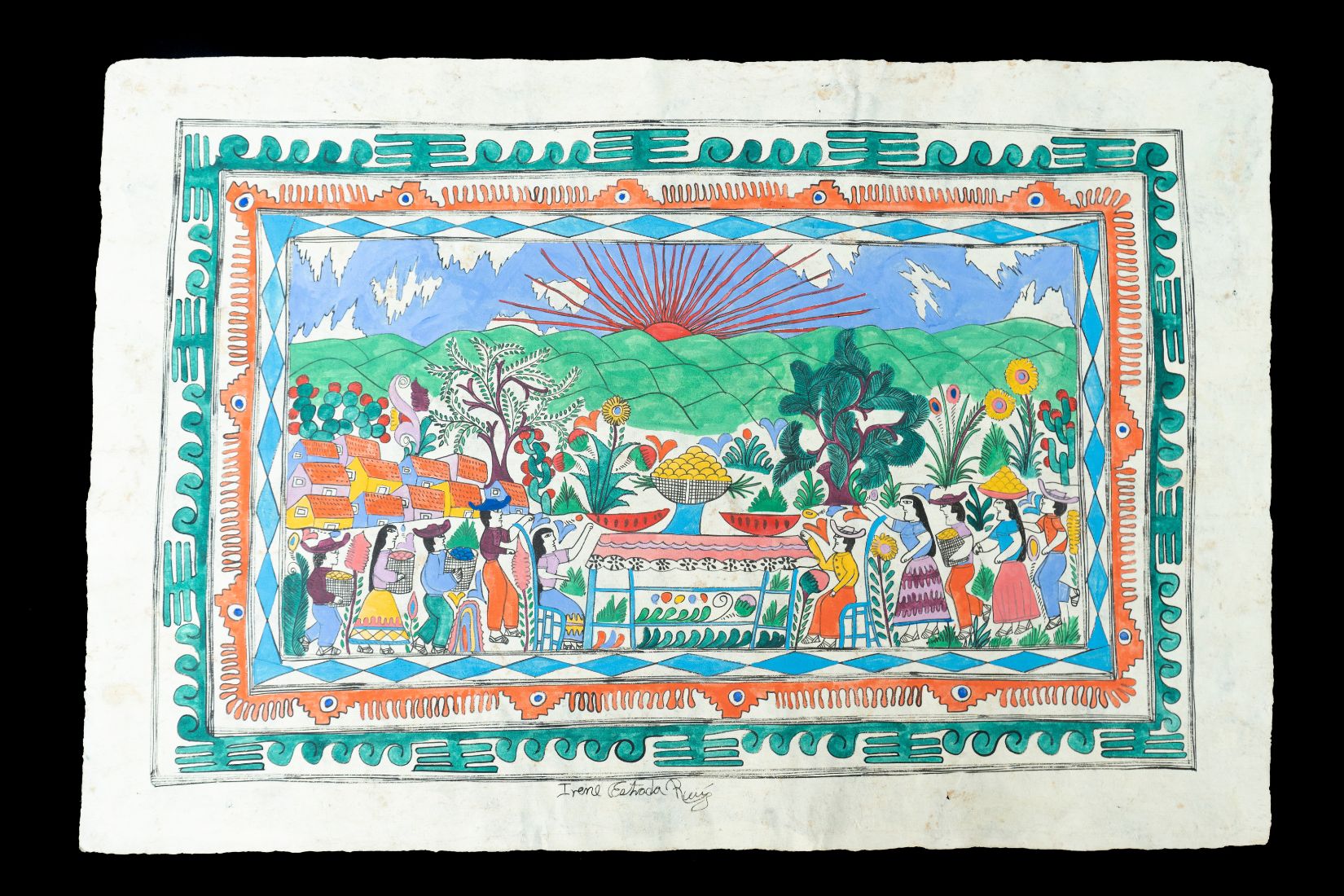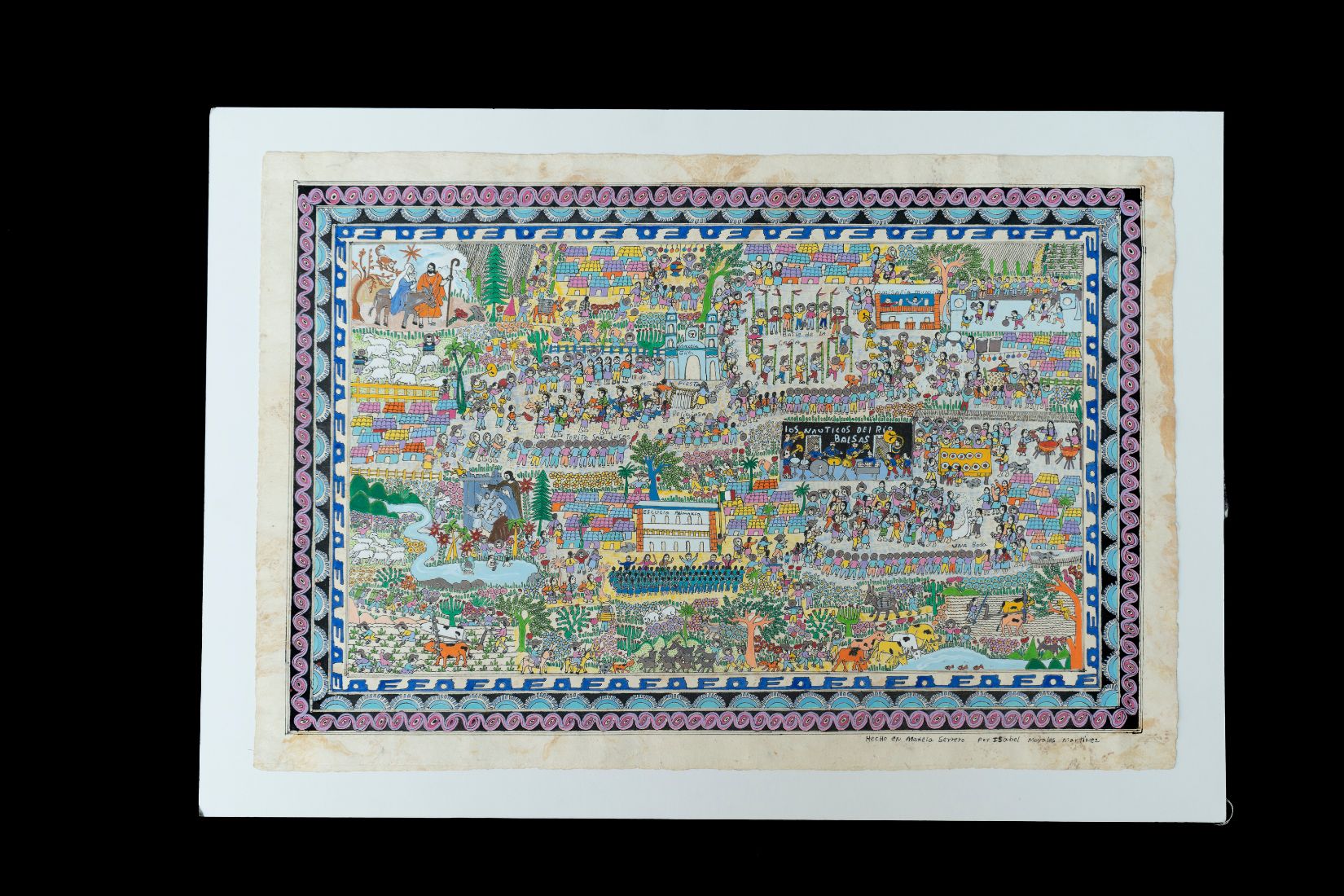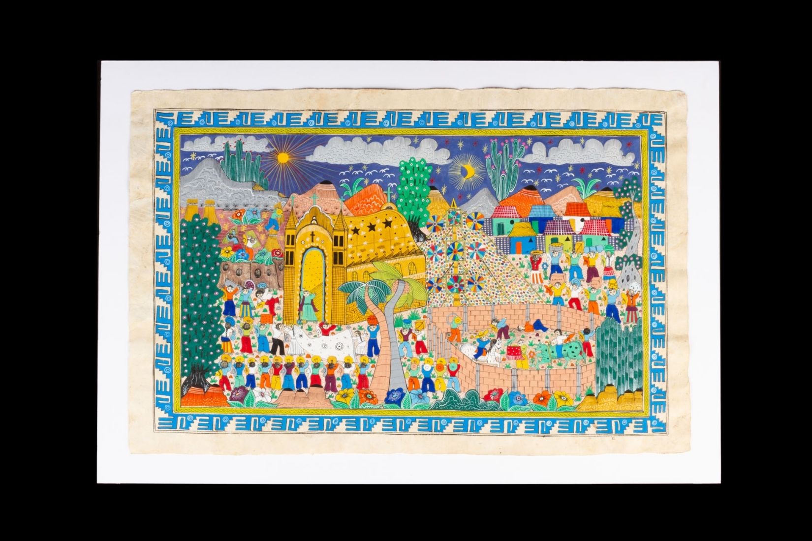 Tradiciones religiosas de Maxela. Pintura acrílica sobre papel amate. Artesana Isabel Morales Martínez. Maxela, Gro. Col. Part. (Foto: EKV).
