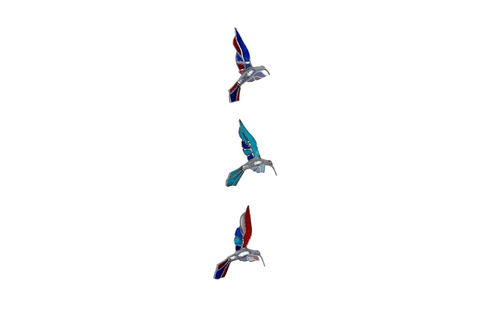 Colibríes en vidrio emplomado con cinta de cobre. Artesano José L. Castro León. CDMX. Col. MAP. (Foto: EKV).
