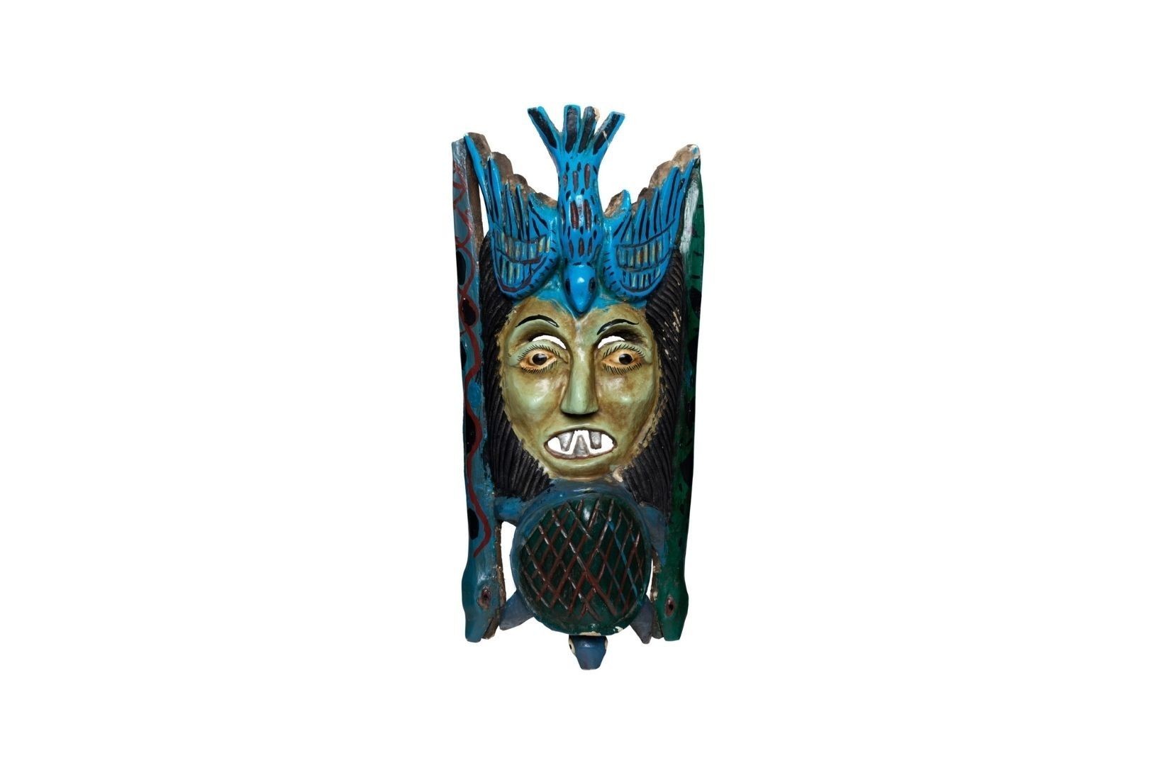 Máscara de madera tallada y policromada. Artesano y procedencia desconocidos. Col. Manuel Arango Arias. (Foto: EKV).