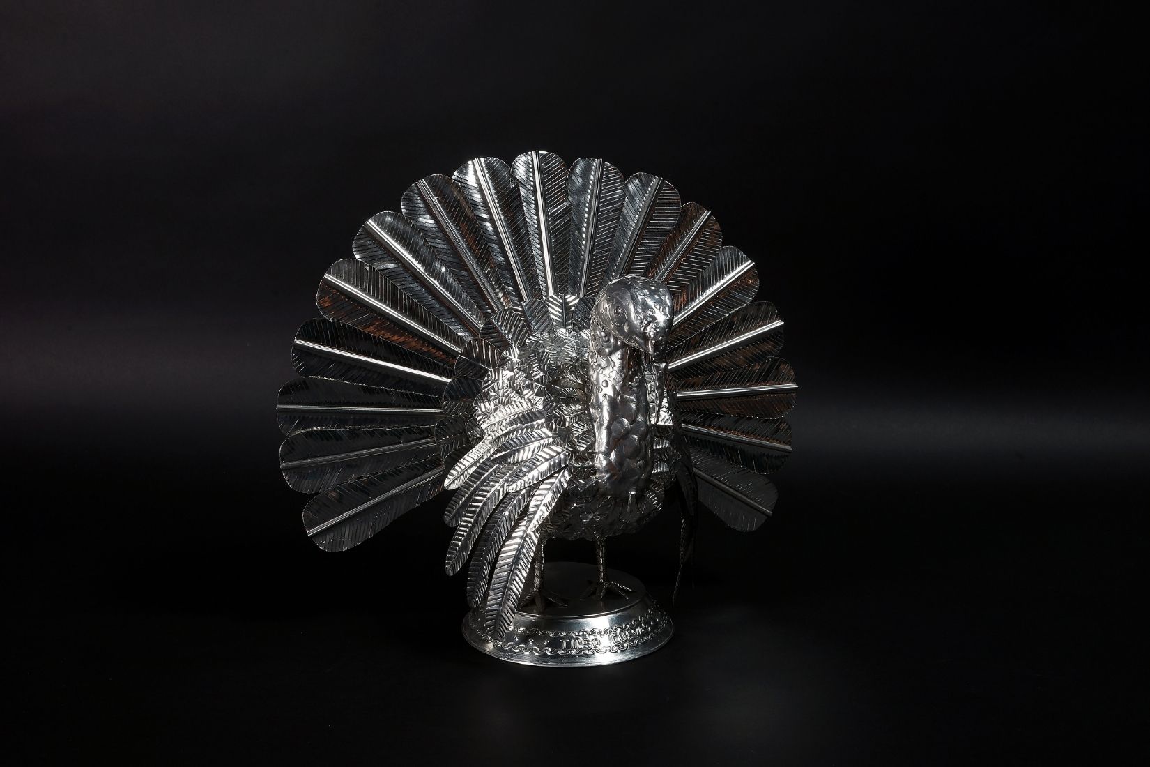 Guajolote de hojalata martillada y ensamblada. Artesano Tirso Juventino Cuevas Velázquez. Oaxaca, Oax. 2008. Col. MAP. (Foto: Jasso).