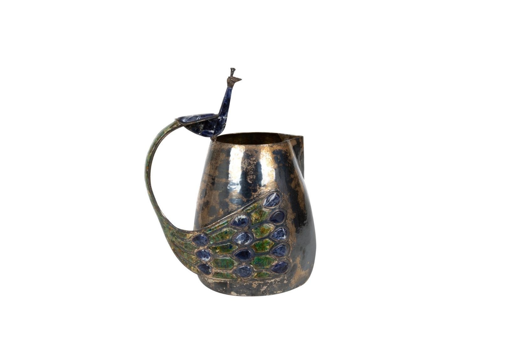 Jarra Pavo real de metal forjado y plateado con incrustaciones de sodalita. Artesanos Los Castillo. Taxco, Gro. Donante Lily Castillo. Col. AmigosMAP. (Foto: EKV).