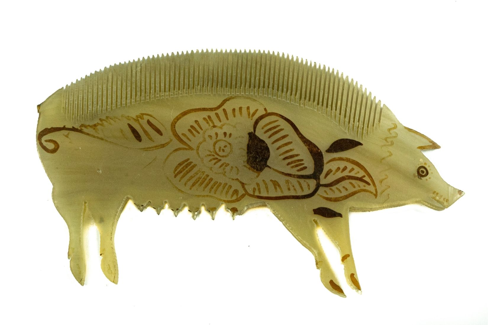 Peine en forma de cochinita en hueso recortado. Artesano y procedencia desconocidos. Col. Populart, pieza donada a AmigosMAP. (Foto: EKV).
