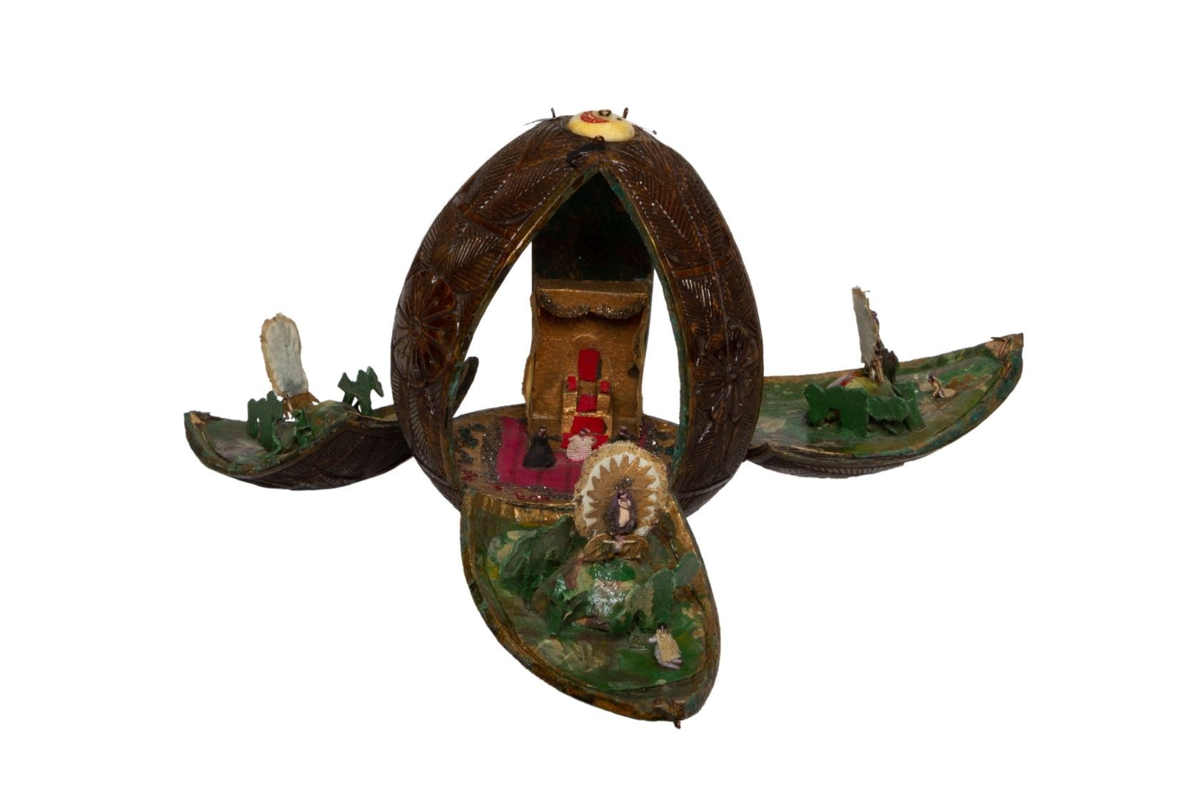 Apariciones de la Virgen, coco tallado. Artesano desconocido. Veracruz, Ver. Col. Marie Thérèse Hermand de Arango. (Foto: EKV).
