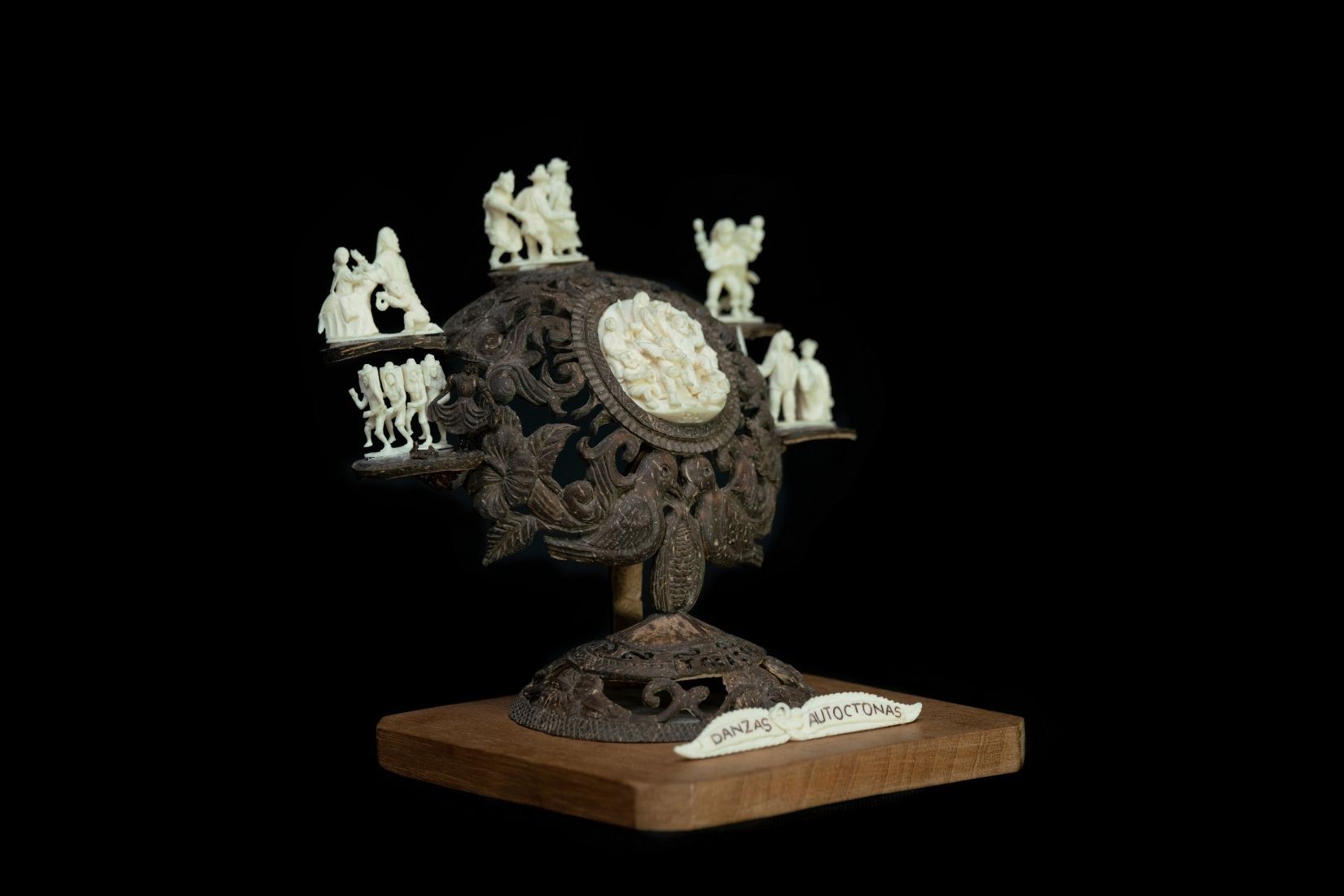 Danzas Autóctonas. Miniaturas en hueso de res tallado, montadas en coco. Artesano Baltazar Hernández López. Nacajuca, Tab. 1999. Col. Part. (Foto: EKV).