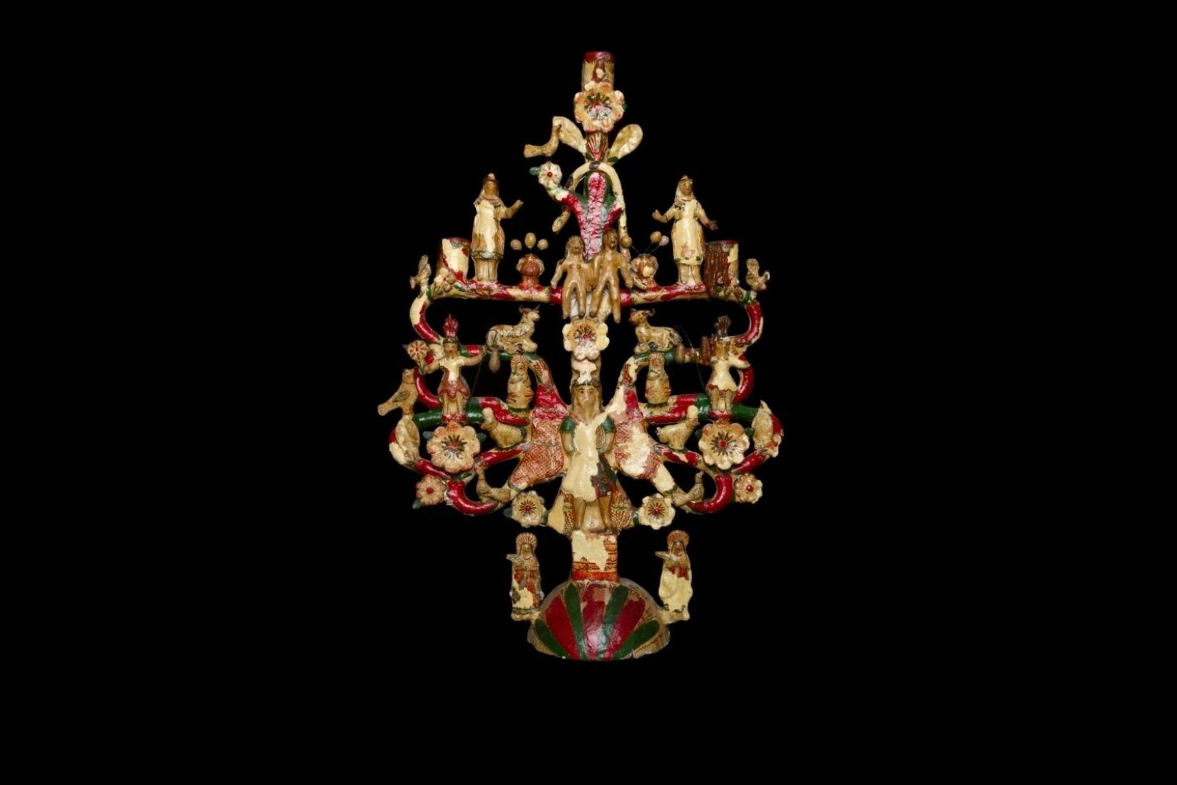 Árbol de la vida con motivos religiosos en barro policromado. Artesano y procedencia desconocidos. Col. AmigosMAP. (Foto: EKV).
