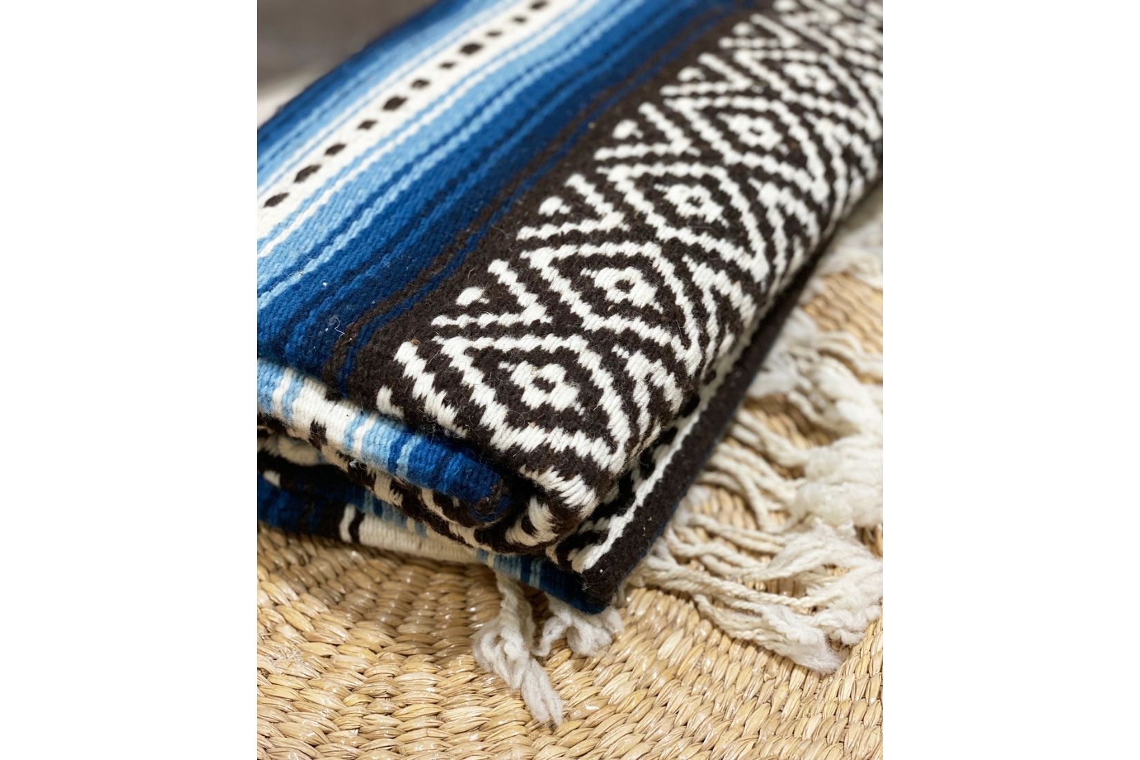 Cobija de lana en telar de pedal colonial. Artesano Ignacio Netzahualcóyotl. Contla de Juan Cuamatzi, Tlax. Tienda MAP.