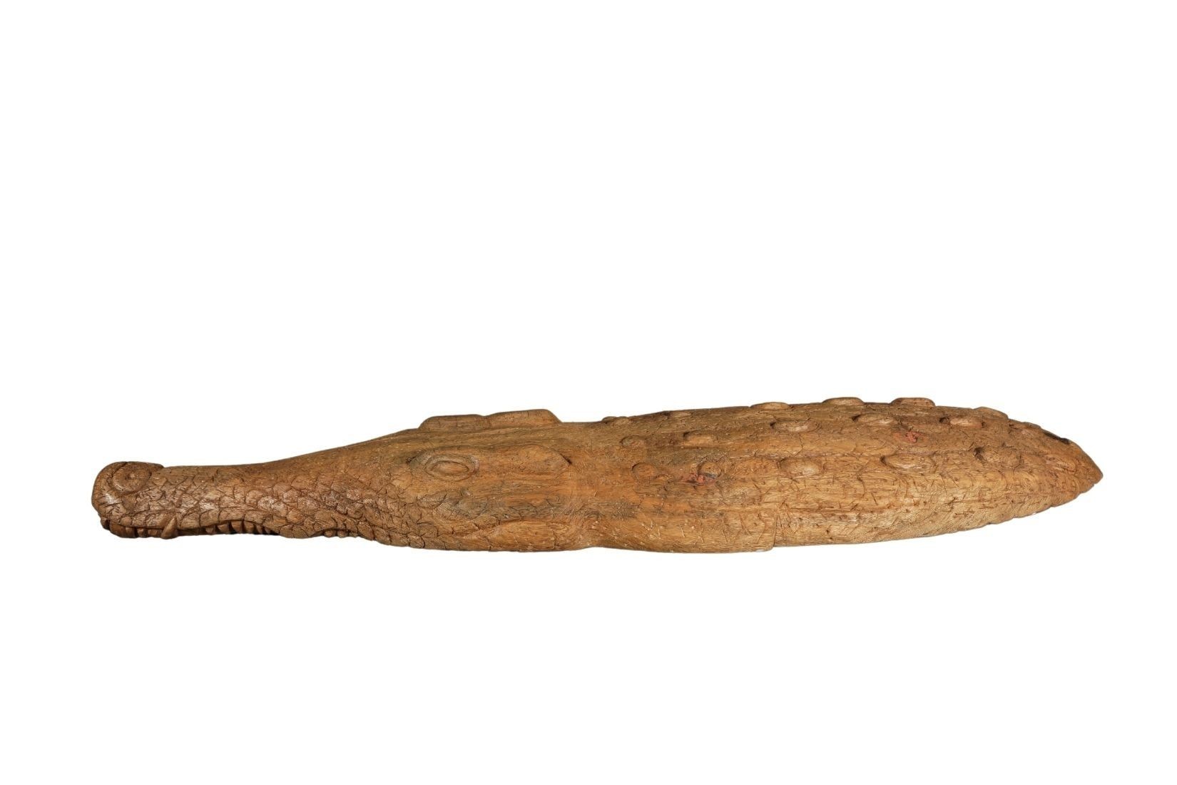 Acechando la presa, cocodrilo en madera tallada. Artesano Abel Domínguez Sánchez. Cunduacán, Tab. Col. MAP. (Foto: EKV).