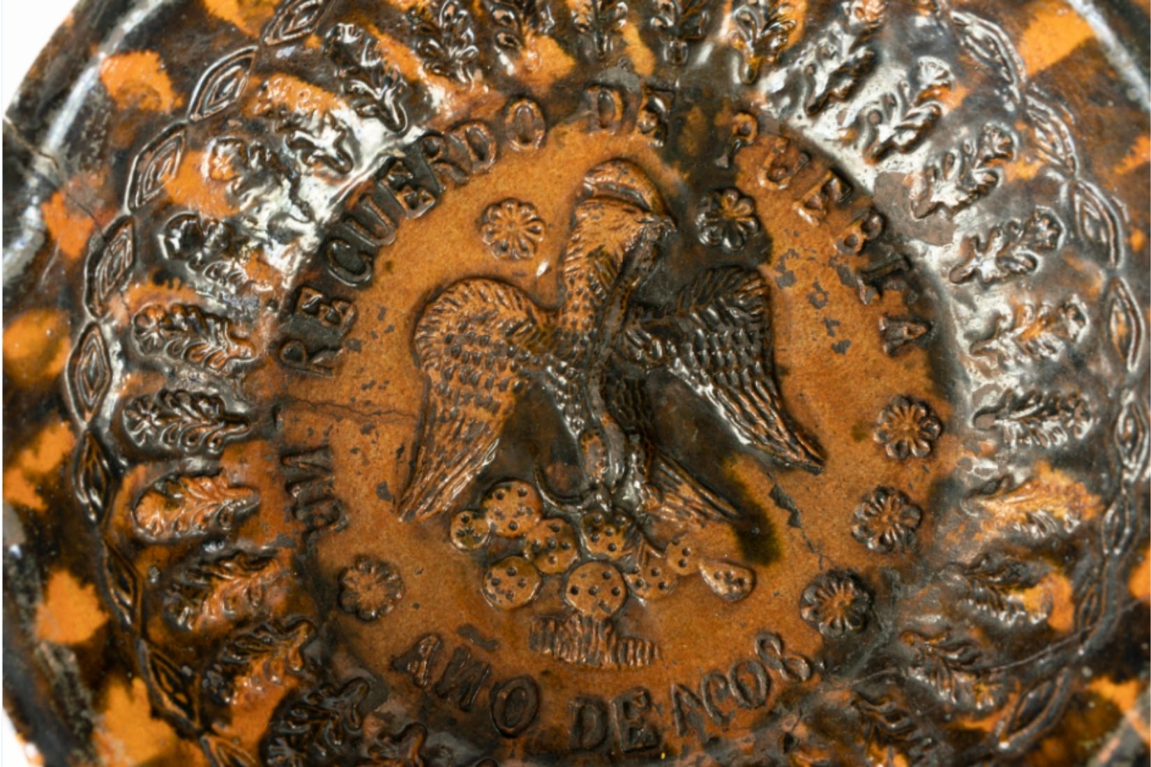 Cazuela con águila. Barro modelado y bruñido. Artesano desconocido. Puebla. Col. Marie Thérèse Hermand de Arango. (Foto: Estudio Kristina Velfu, EKV).