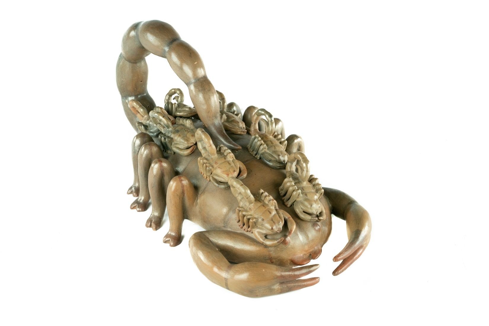 Alacrán con crías. Barro modelado y bruñido. Artesana Elodia Martínez de López. Acatlán, Pue. Col. Part. (Foto: EKV).