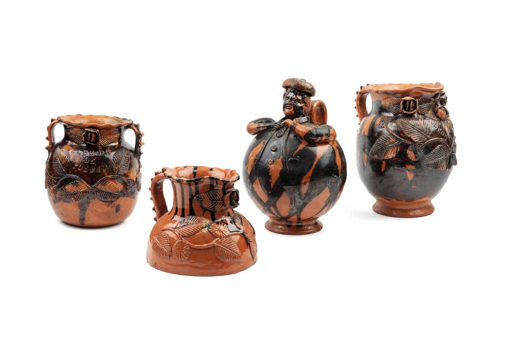 Jarro panzón y ollas. Barro modelado, vidriado y chorreado. Artesanos desconocidos. San Martín Texmelucan y Barrio de la Luz, Pue. Col. Miguel Abruch. (Foto: GLR Estudio.