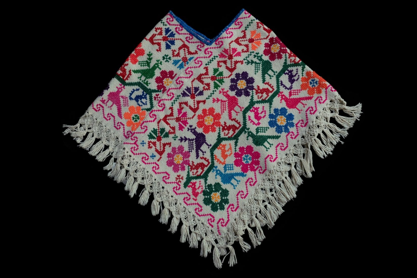Quexquémetl de lana natural tejida y bordada. Artesano desconocido. Hueyapan, Pue. Donante Cecilia Occelli. Col. AmigosMAP. (Foto: EKV).