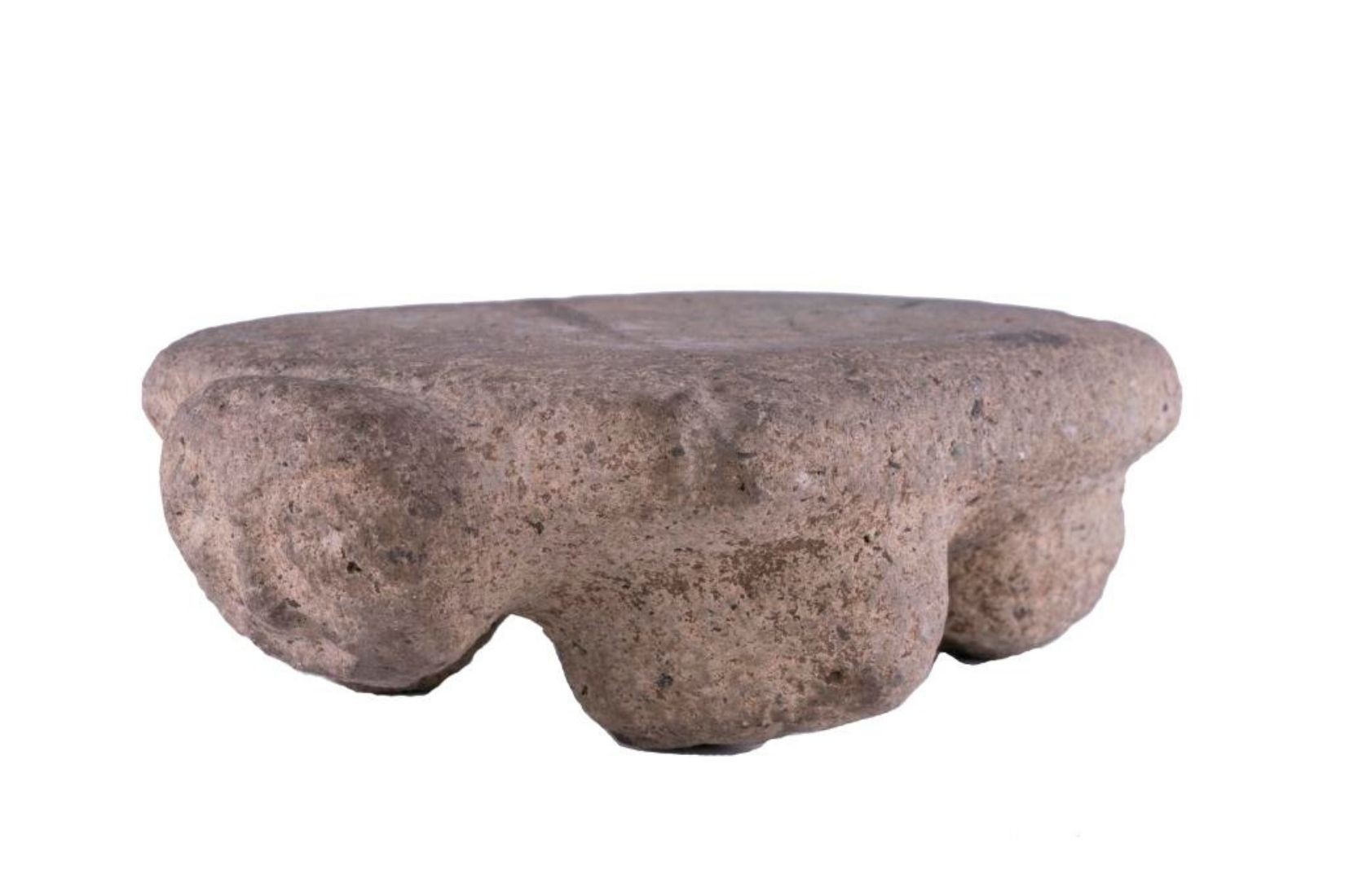 Metate prehispánico de piedra volcánica. Artesano desconocido. Puebla. Col. María Teresa Pomar. (Foto: EKV).